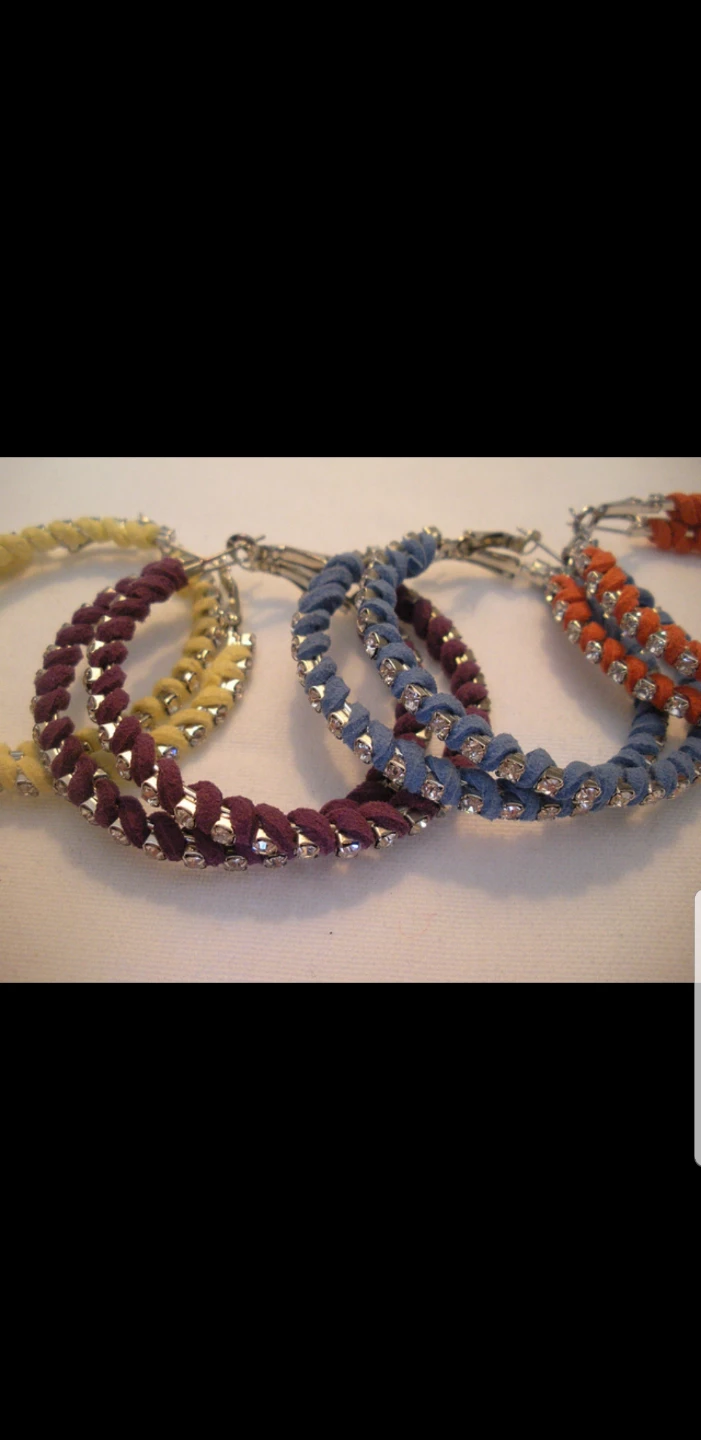 Selling a set of brand new assorted hoop earrings! They come in blue, orange, purple, and yellow. These are sure to add a pop of colour to any outfit! Sold as a set of 4 (one in each color).