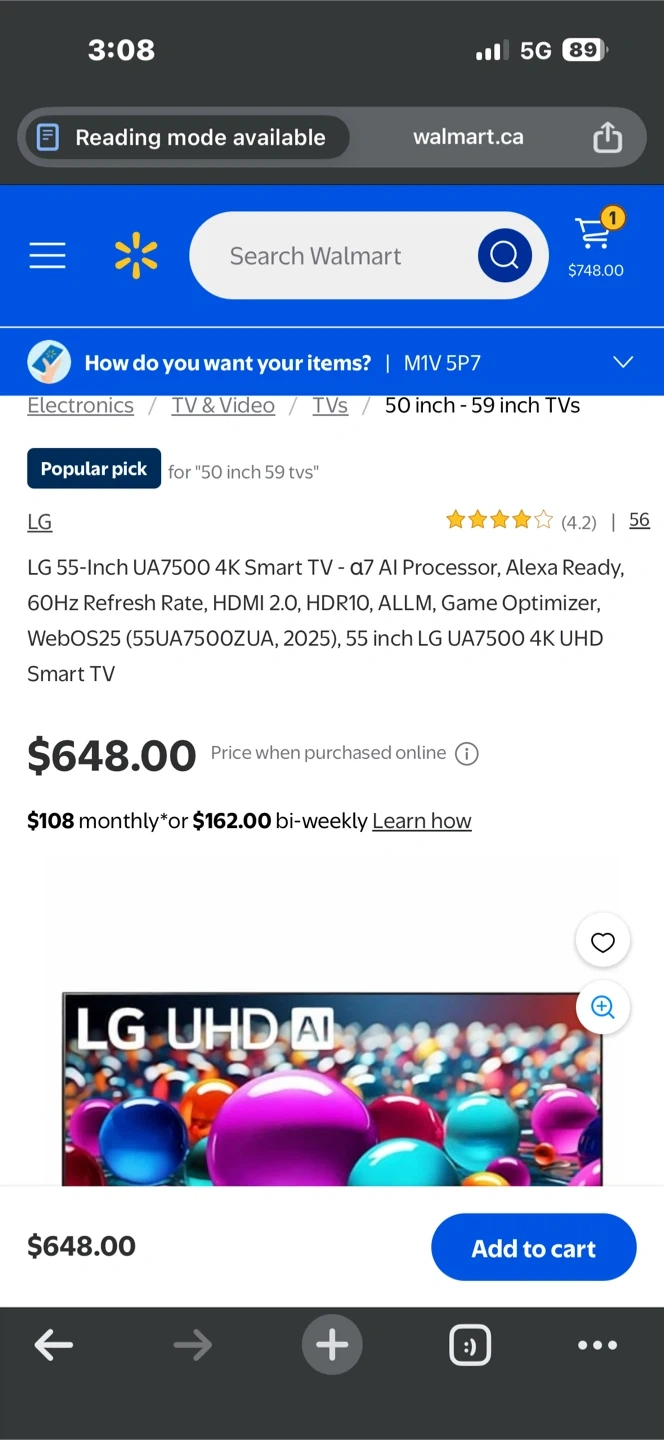 Brand new LG 55ua7500 55-inch Smart TV available for sale. Delivers excellent picture quality with vibrant colors and smooth performance, perfect for movies, sports, and everyday entertainment.