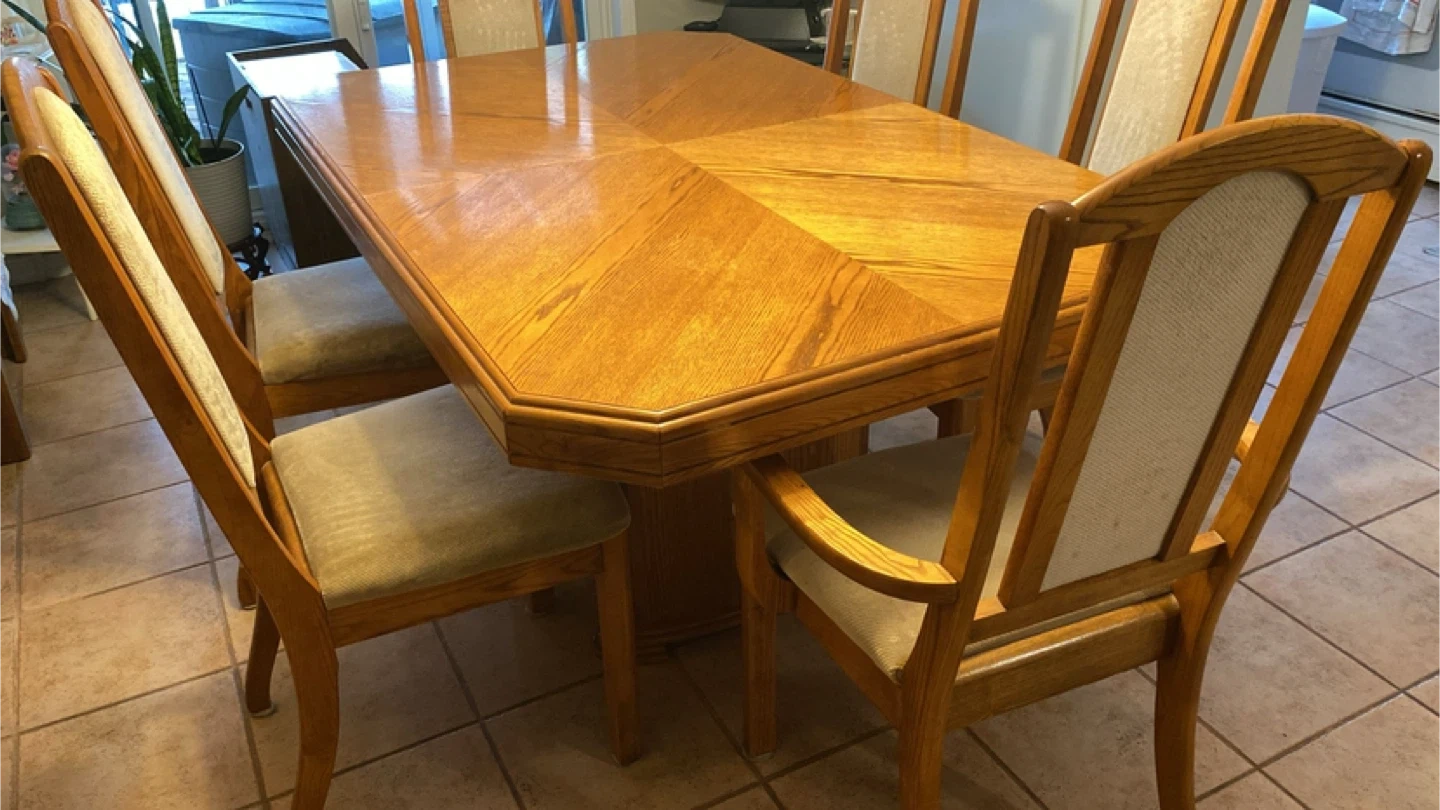 • Style: Late 1980s–1990s traditional / transitional dining set.