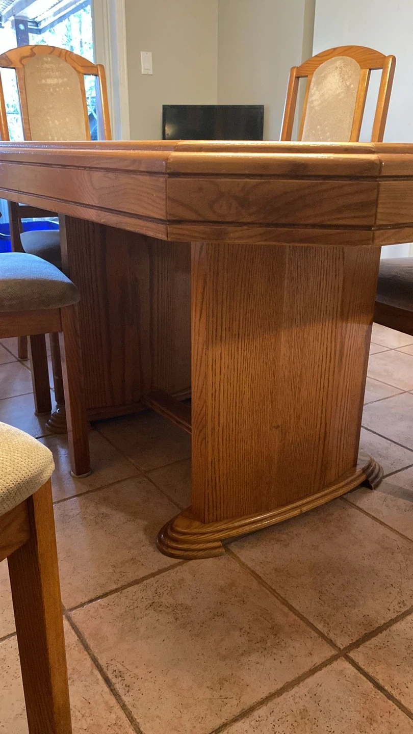 Solid Oak Dining Table with 6 Chairs – Classic Pedestal Base