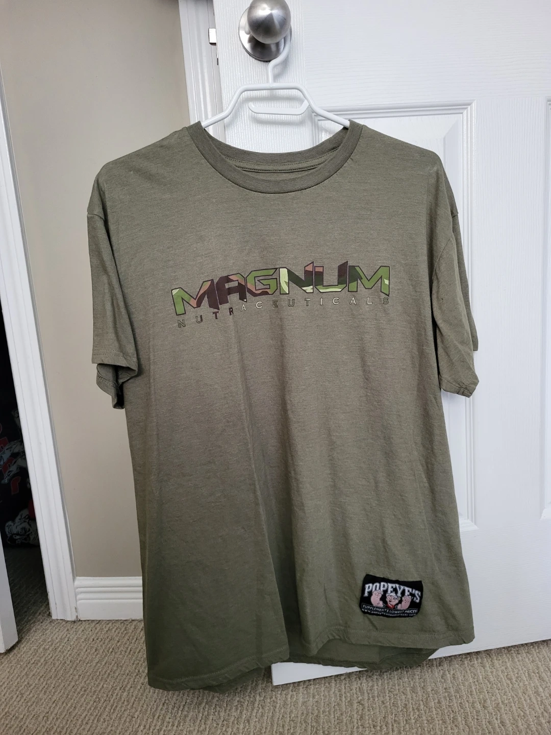 Buy & SellMagnum Nutraceuticals Popeye's Gear T-Shirt XLMagnum Nutraceuticals Popeye's Gear T-Shirt XL$3This is a Magnum Nutraceuticals t-shirt from Popeye's Gear. It's olive green and made from a cotton-polyester blend. Size XL.ConditionGoodSizexlBrandMagnum NutraWHERE TO MEETCheck LocationView MapSELLERverifiedSashaHighland West963 reviews0 chats·0 favorites·2 viewsSEND CHAT TO SELLERHi Sasha! I’m interested in your listing.Hi Sasha! I’m interested in your listing.Get the Karrot app to chatSign In to chat
