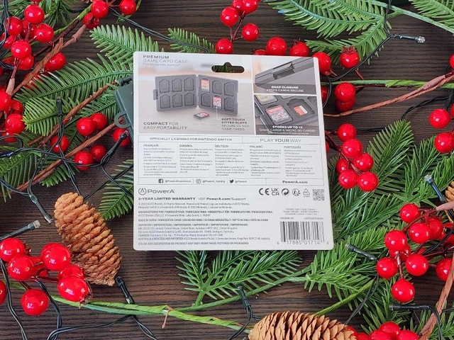Featuring the Z Logo, this Zelda: Breath of the Wild Premium Game Card Case stores up to 12 Nintendo Switch game cards and 12 micro SD cards. The compact case is durable and easy to take on-the-go. Form-fitting rubber slots keep cards in place and a snap-closure keeps everything secure.