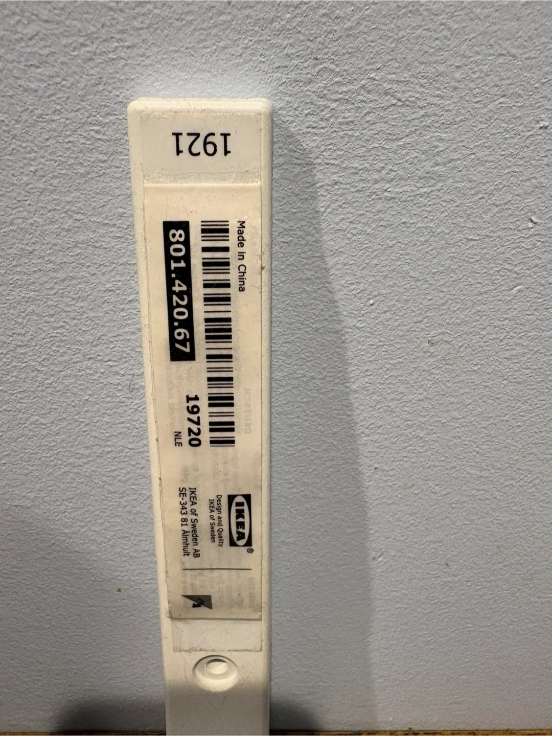White IKEA plastic brackets, pair included. These are sturdy plastic brackets designed for mounting shelves. Each bracket has pre-drilled holes for secure installation. Great for organizing spaces at home or in the garage!