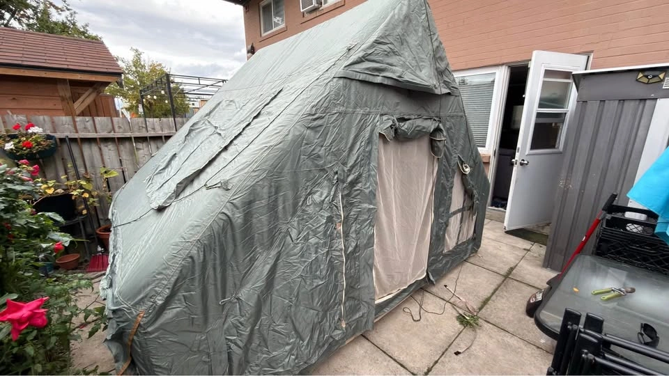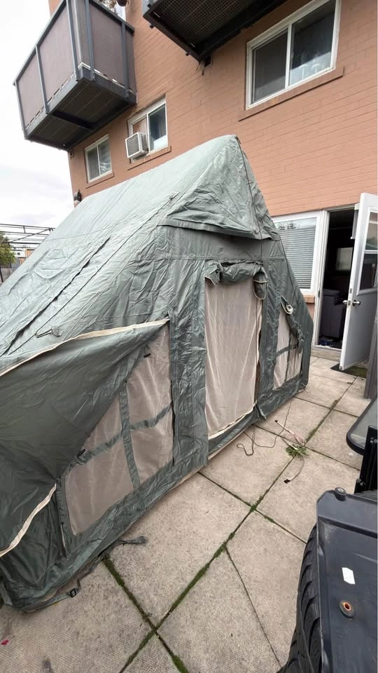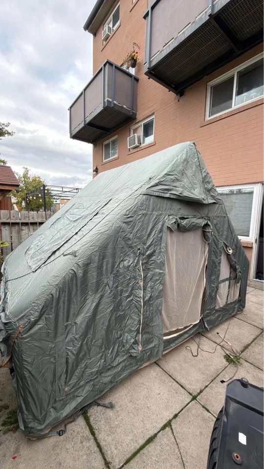 26Kikilive Inflatable Camping Tent, 4-6 Person Inflatable Tent for Camping, Easy Setup Waterproof Glamping Tent with Pump and Stove Jack, Mosquito Screen Used once this year Complete Accessories Pick up only