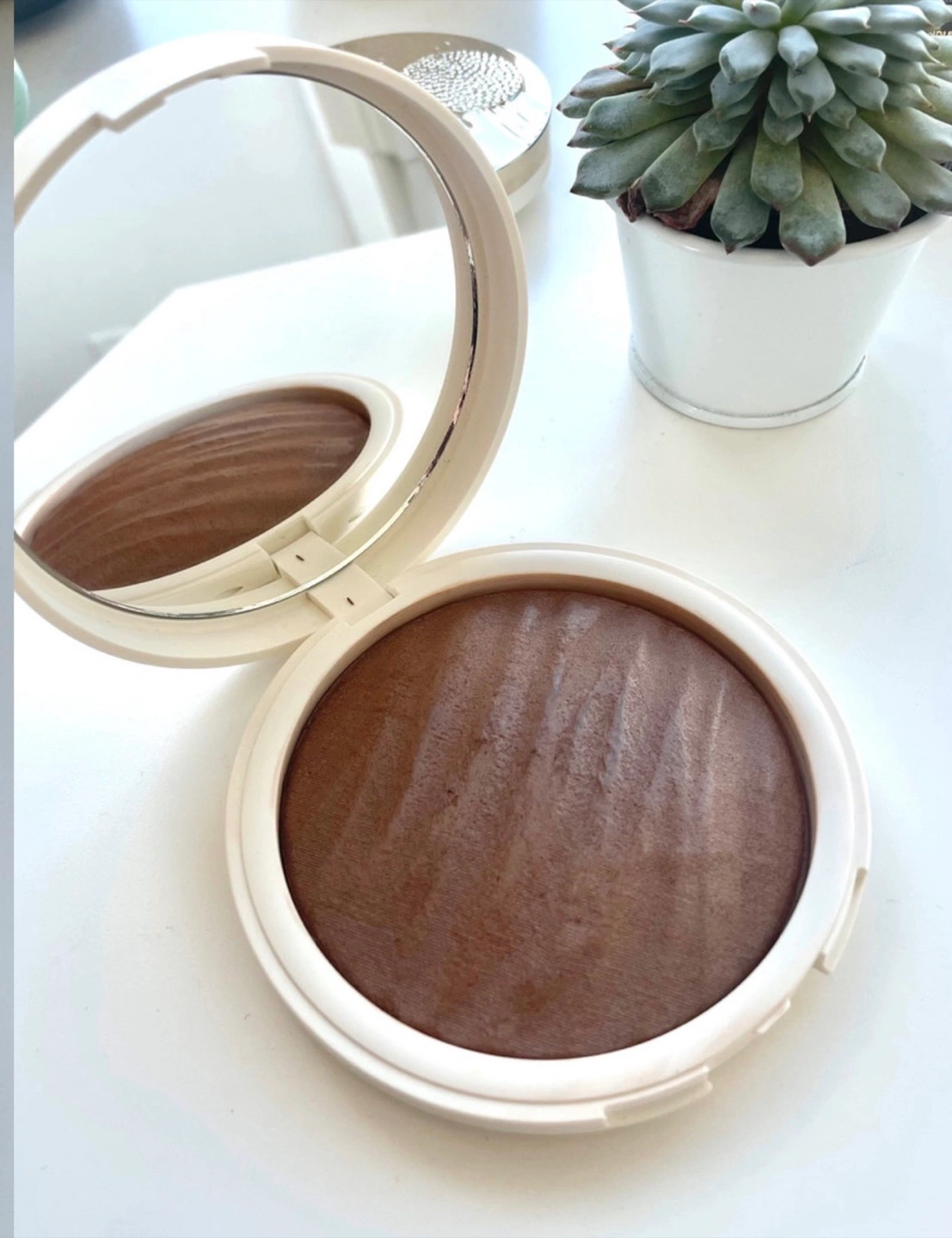 Huge bronzer in color 03 Cocoa. Slightly used for 2 months. Pick up in downtown near Calgary Tower. Maxi baked bronzer. An instant touch of warmth for the face, sculpting the features and offering a radiant sun-kissed look. Why you'll love it: -Its ultra-fine and adherent texture comes in two versions, one multicoloured with iridescent marbling and another monochrome with an eye-catching embossed wave motif -Natural sun-kissed finish -Beautiful to blend, it offers a buildable result from subtle to intense -Irresistibly fresh notes of lemon blossom -Suitable for normal to combination skin -Integrated mirror for warming up your complexion on the go As if kissed by light, you have glowing skin and a warm complexion. An even bronzed look and enhanced features in one simple step.