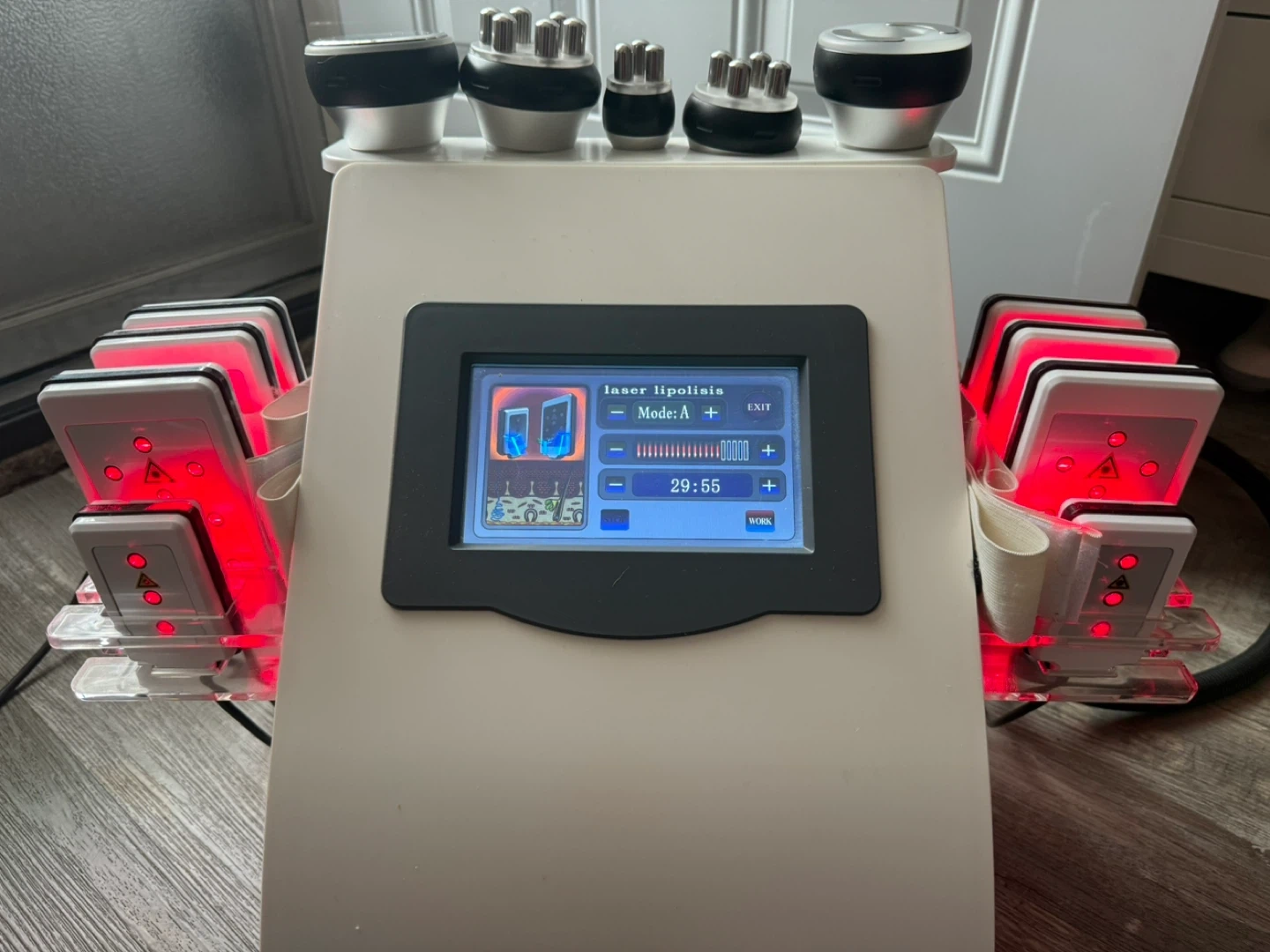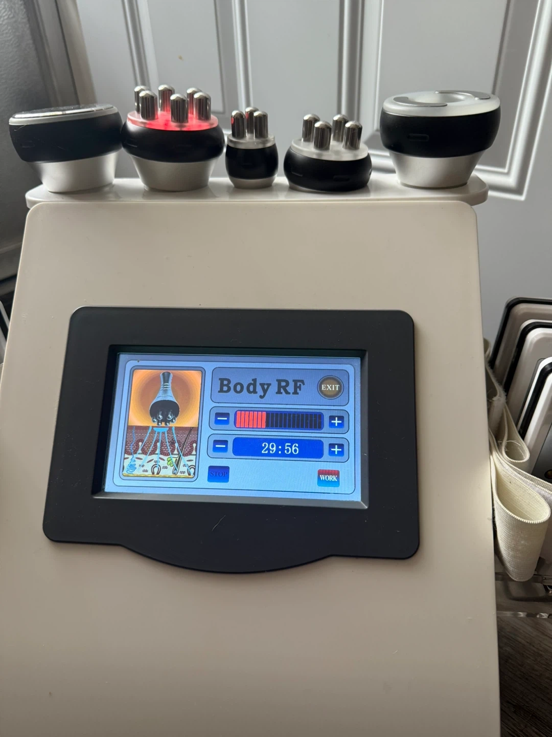 18This Kims Slimming System offers a comprehensive approach to body contouring and skin rejuvenation with Cavitation, Vacuum Bipolar 3D RF, RF Face, RF Body, and Laser Lipolysis functions. While it's been used, it is in excellent working condition and comes with all applicators. Here’s a quick rundown of what this system offers: * **Cavitation**: Utilizes ultrasound technology to break down fat cells. * **Vacuum Bipolar 3D RF**: Combines vacuum suction with radio frequency to tighten skin and reduce cellulite. * **RF Face and RF Body**: Radio frequency treatments for facial and body skin tightening. * **Laser Lipolysis**: Employs laser energy to contour the body. Why not give your body the spa treatment it deserves? Grab this system and turn your space into a personal wellness center. Just a heads up—if you're seeing this ad, the slimming system is still available and ready to go to a new home!