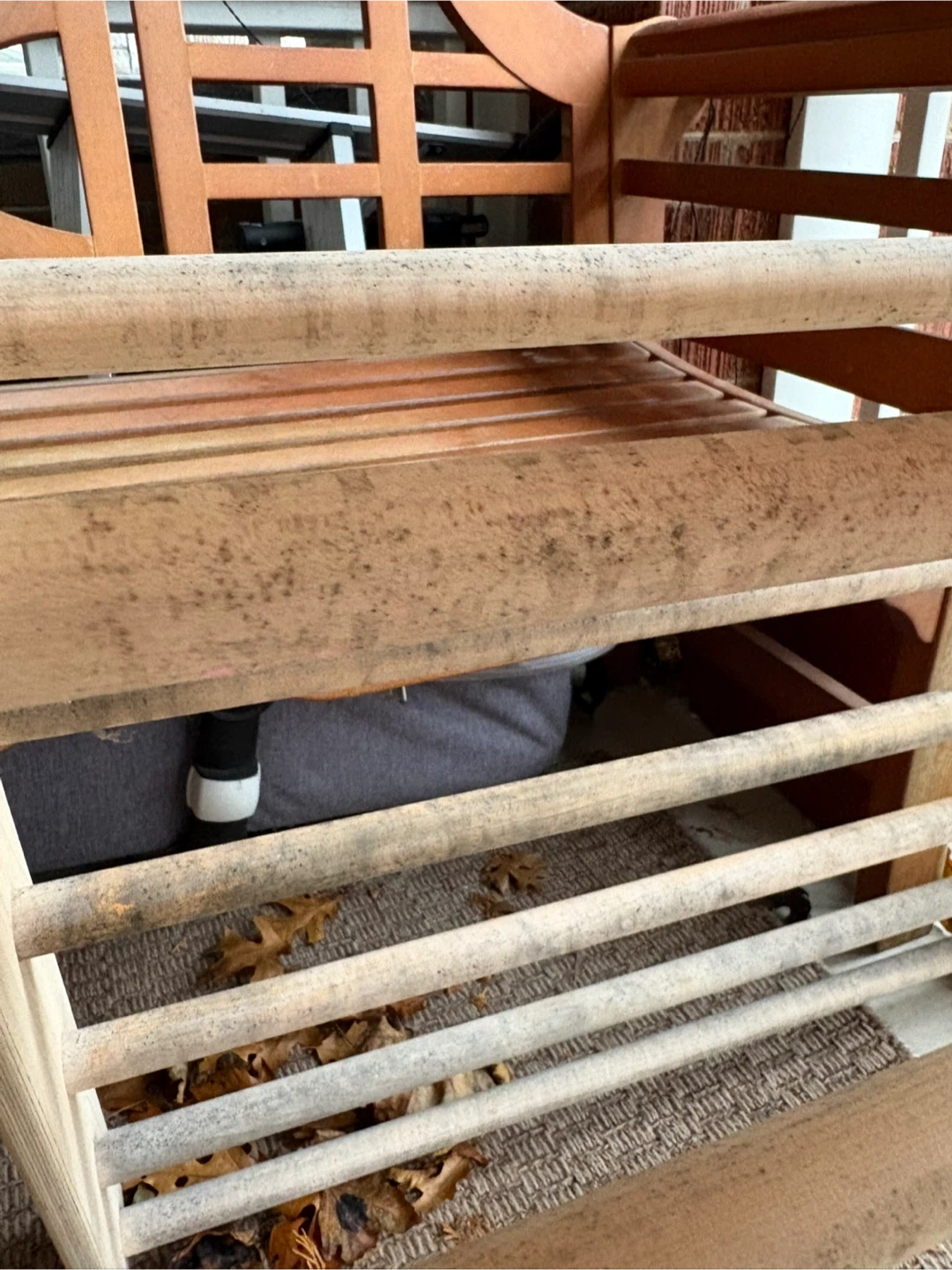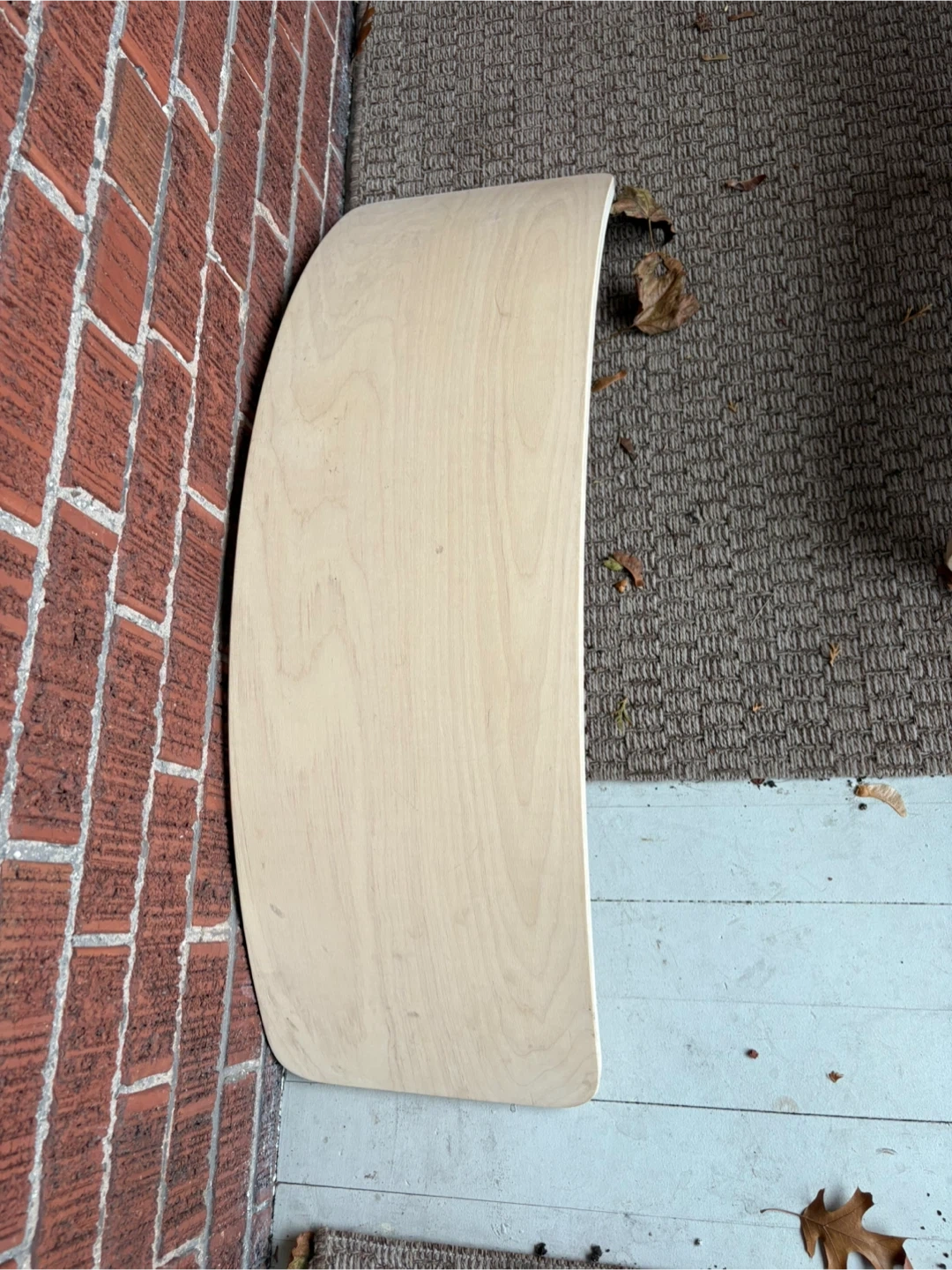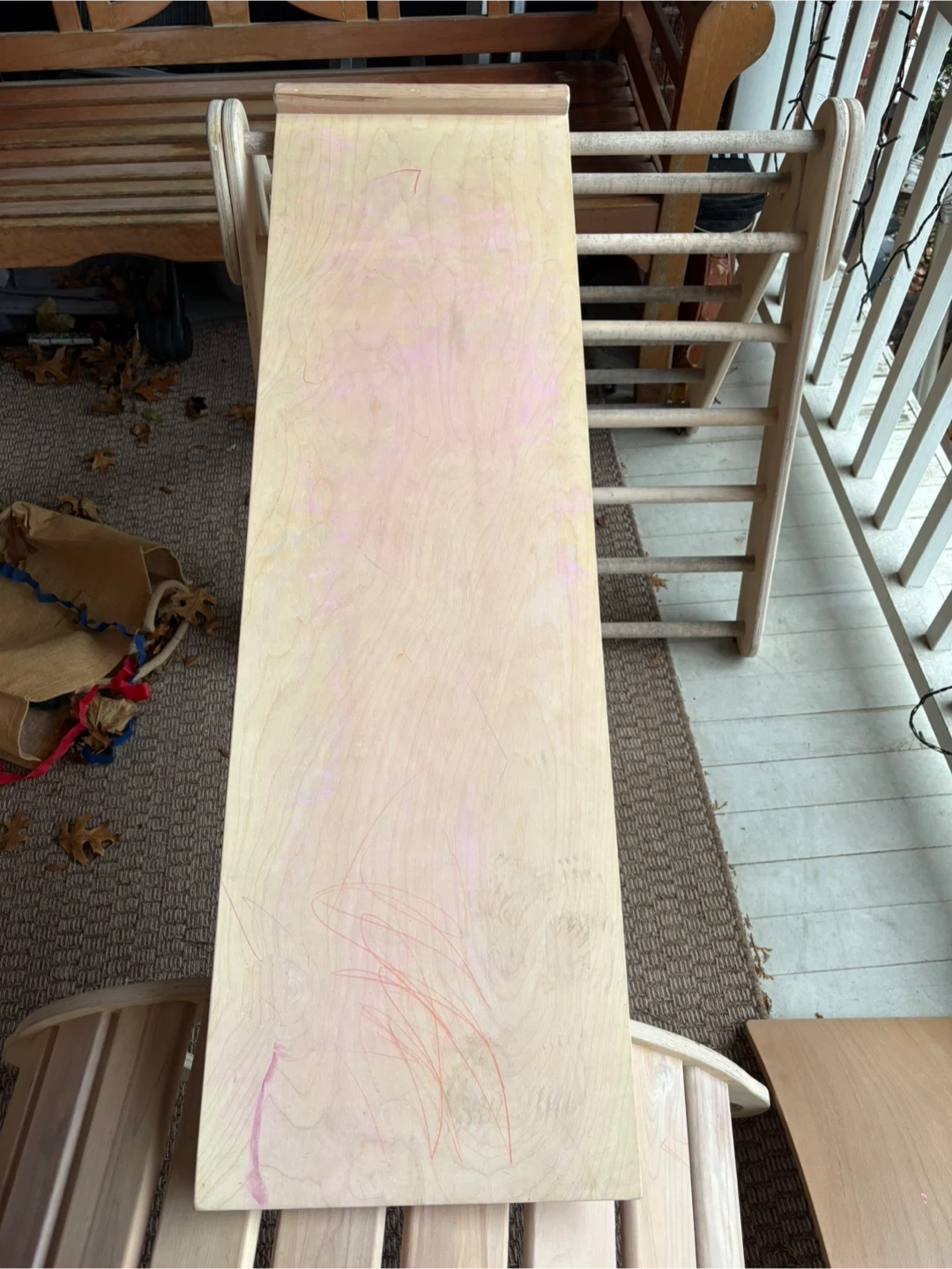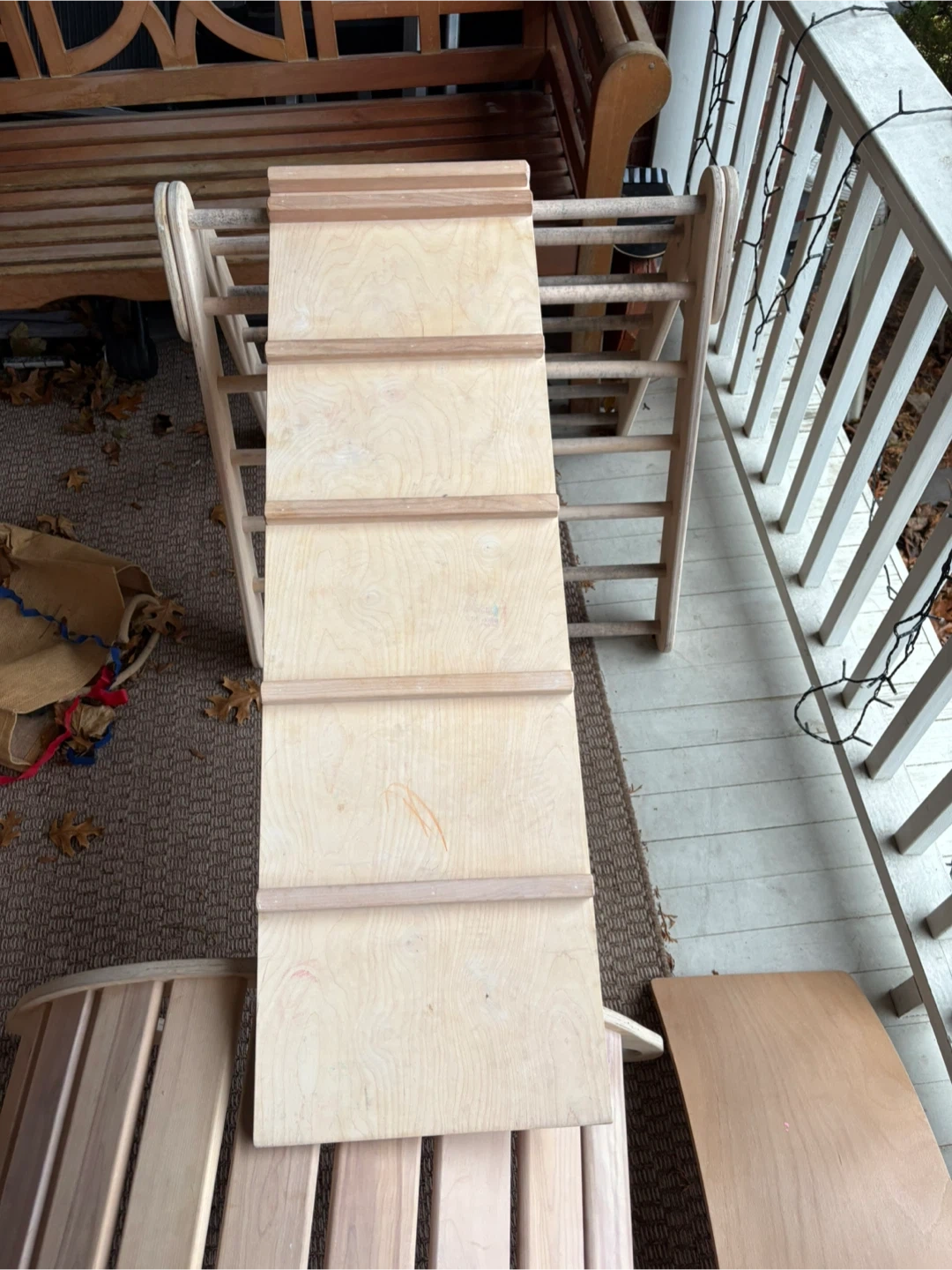 50Selling a Kimboo climbing set for kids! Includes the arch, ramp, and 2 balance boards. It's a great set to keep the little ones active and having fun. Gently used, with some minor wear. The equipment is meant to be used indoors. There’s a bit of water damage on the triangle from being left outside (see last image) but it can be sanded down easily.