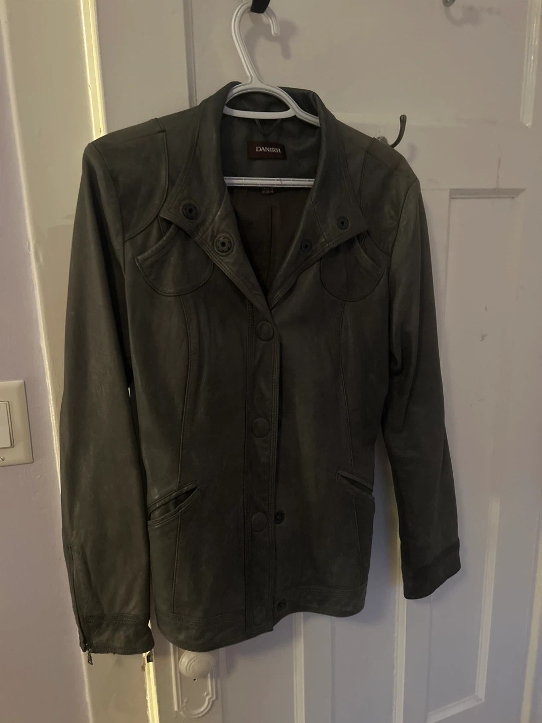 Selling a Danier leather jacket in size M/M. It's in great condition and ready for a new owner! The jacket is a stylish grey colour and made of leather