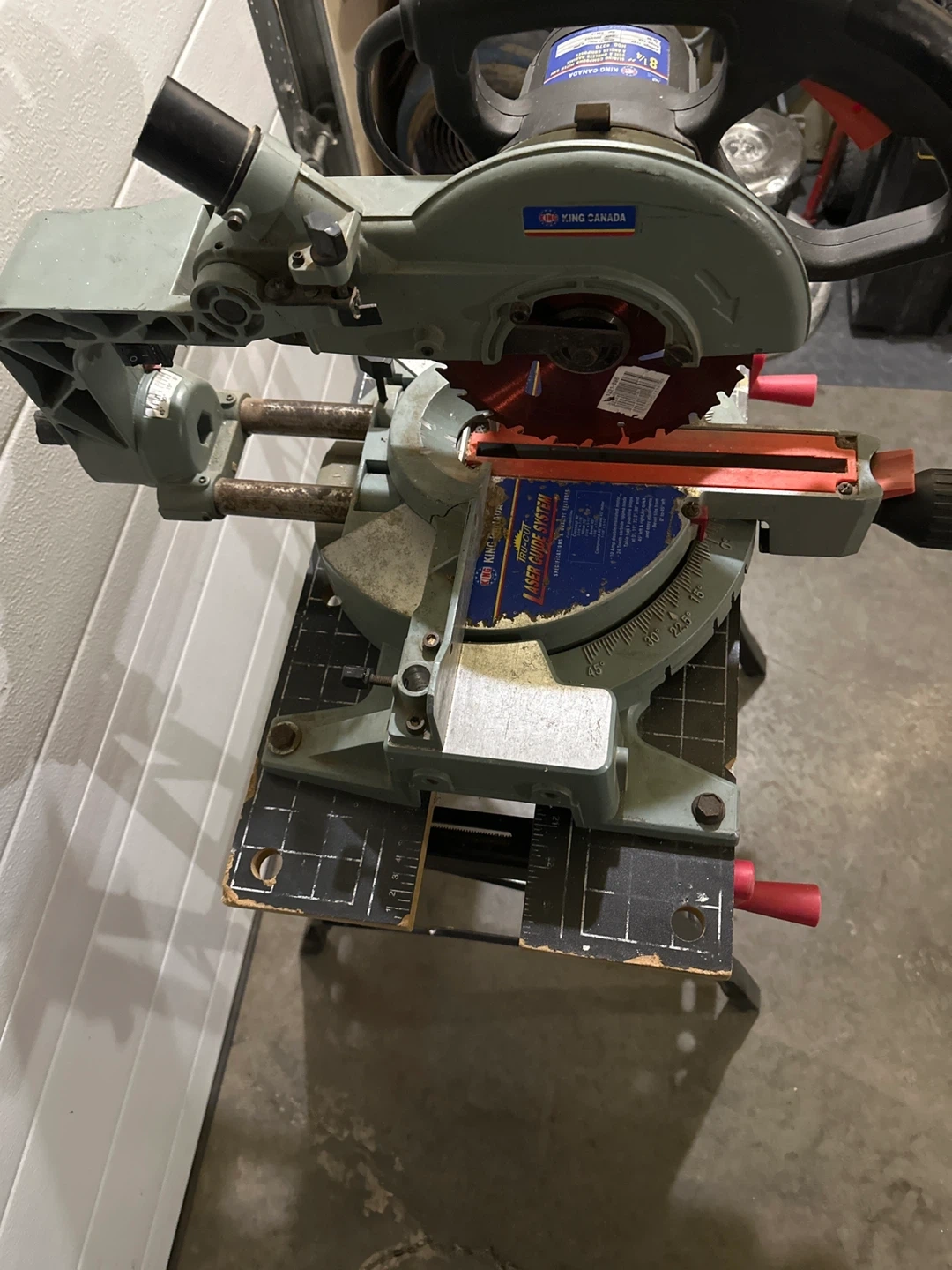 311Selling a King Canada sliding compound mitre saw. It's in good working condition and ready for your next project Need ratchet to unlock/lock in position