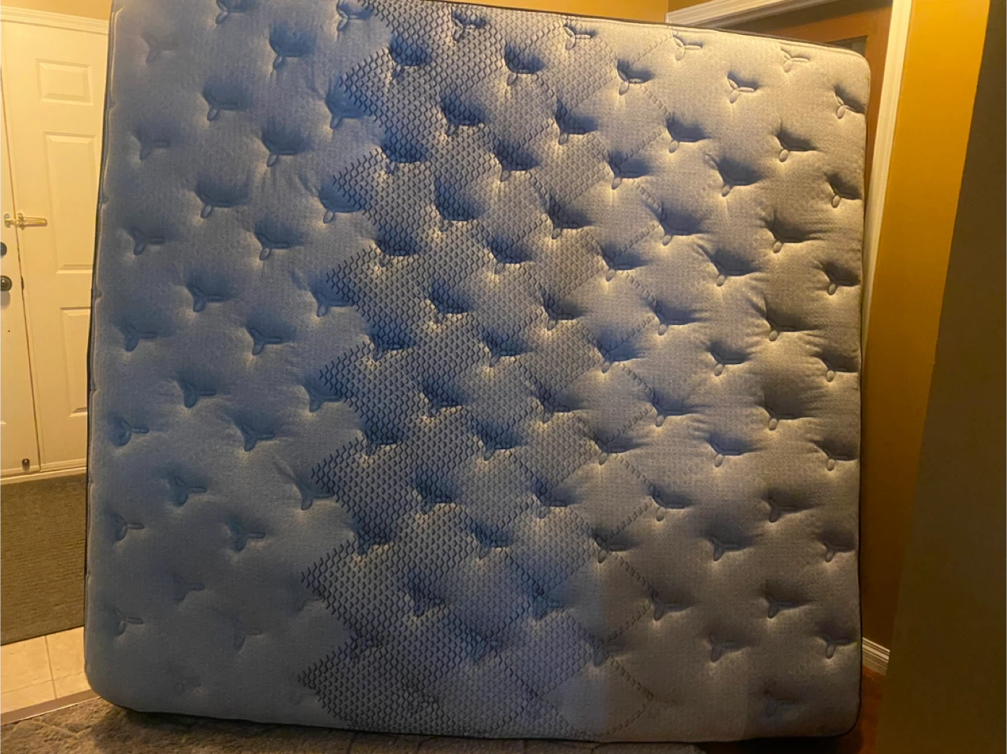 Selling a King Size Beautyrest GL6 Comfort Top mattress and Box Springs! It's in great condition and ready for a new home. The label indicates it contains new material only, and it was manufactured in 2022 February 02.