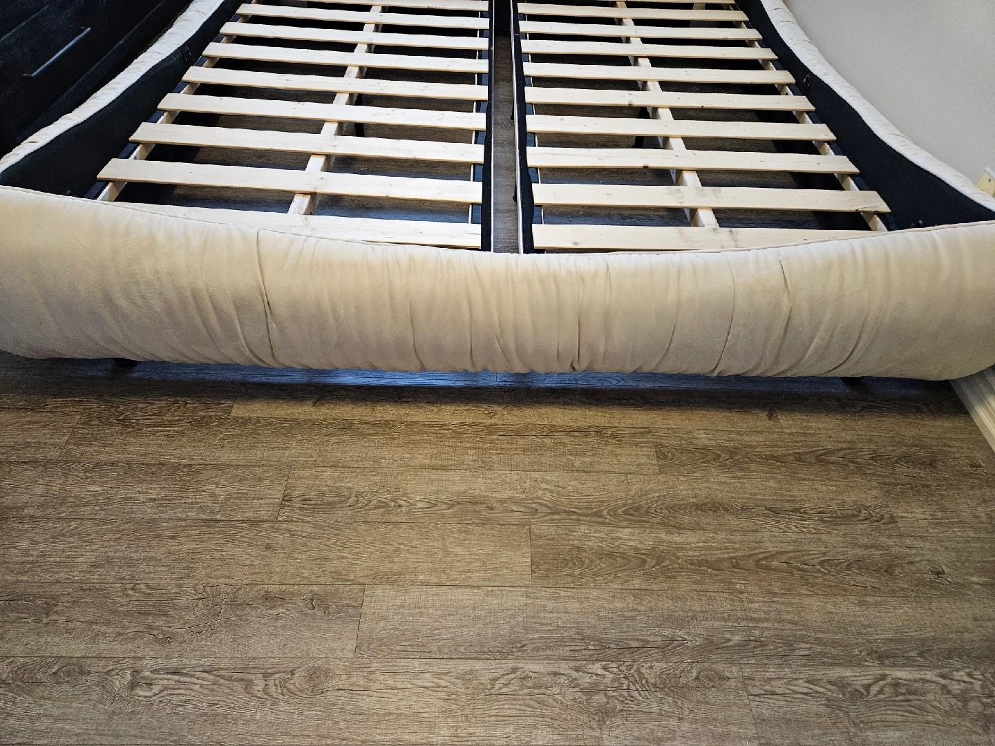 Perfect condition King bed frame Nothing wrong with the bed, just changing style All sizes and model details attached Purchased from Wayfair last year Disassembled, all parts included From pets and smoke free home Pick up Dufferin and Clark Thornhill