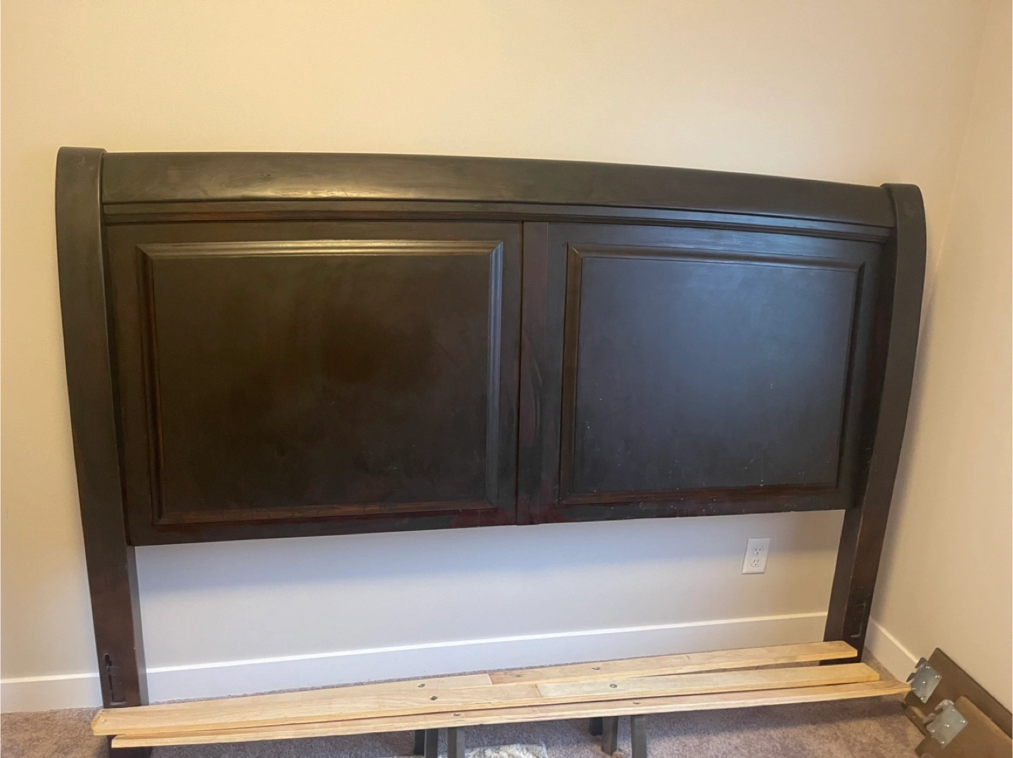 20Selling a king size bed frame and mattress. The frame is a dark wood colour and comes with all the necessary supports. The mattress is also king size and in good condition. Perfect for a guest room or upgrading your current setup!
