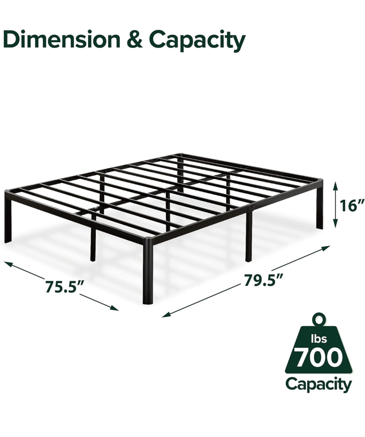 Very new 16Inch tall king size platform bed frame, used as a temp bed for a few months till our bed came. Very durable and easy to assemble, has been disassembled and it is very easy to fit in a car for transport. Pick up only