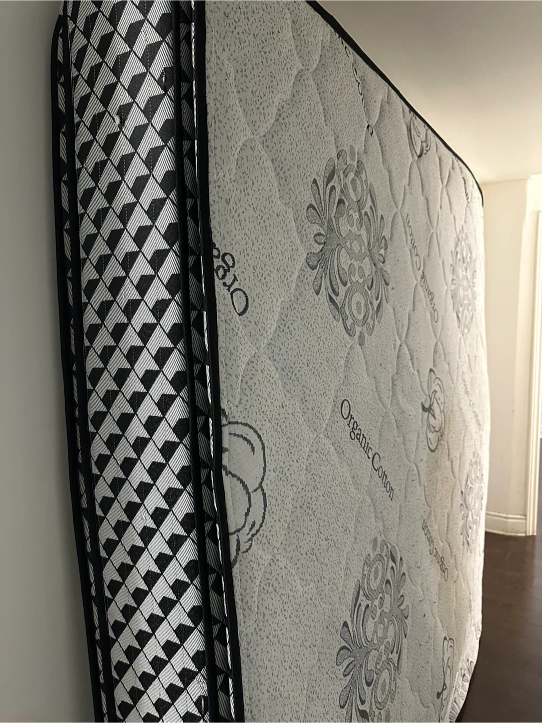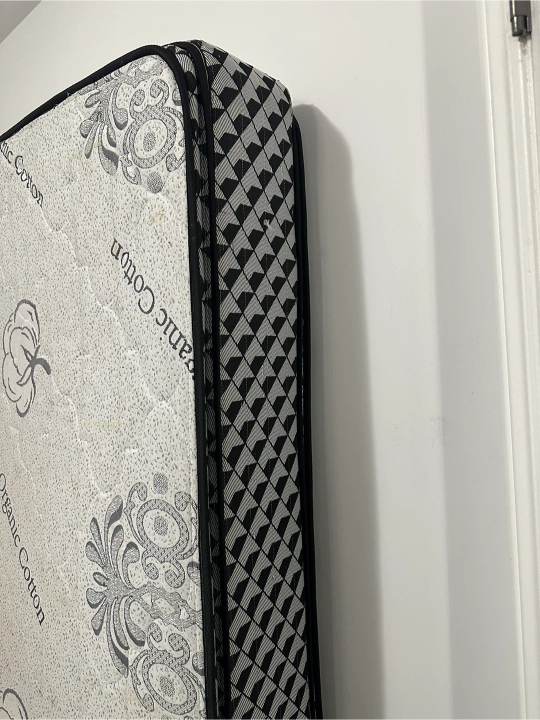 60Selling a mattress with an organic cotton cover. It has a nice pattern and looks to be in good condition. Perfect for a comfy sleep . Smoke and Pet free almost new . Selling asap because moving to another province.