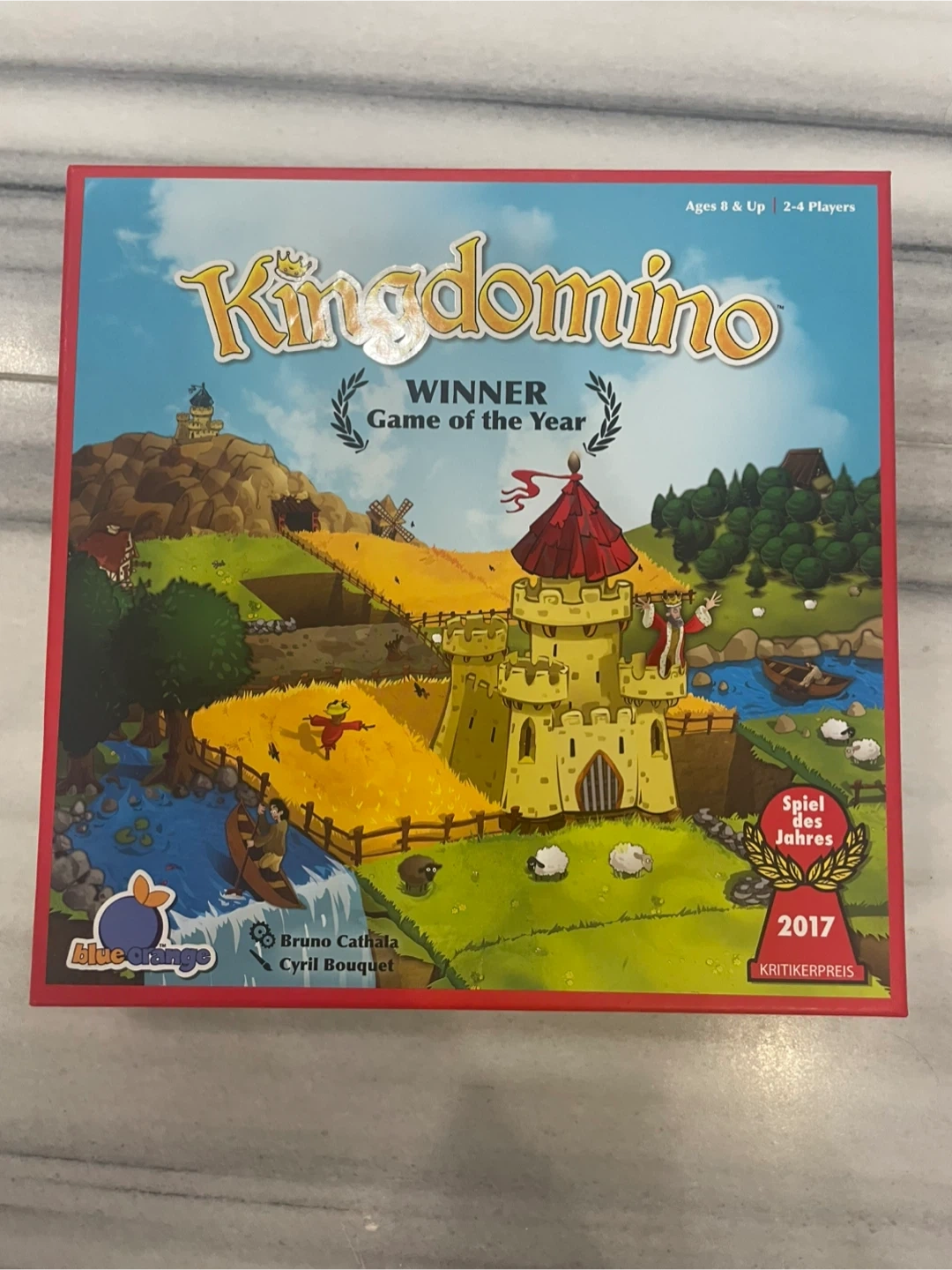 10Selling a gently used copy of Kingdomino! This fun and engaging game is perfect for ages 8 and up, and can be played with 2-4 players. It includes 48 dominoes, 8 wooden king tokens, a domino dispenser, a scoring pad, and illustrated rules in English and French. Get ready for a kingdom-building twist!