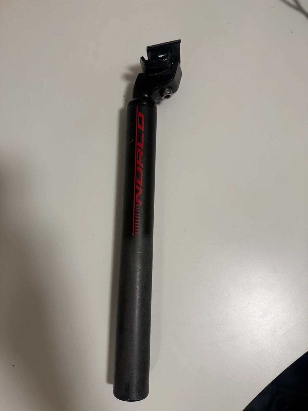 This is a Norco bicycle seatpost. It's made of black metal. Compatible with most mountain bikes. 31.6mm diameter