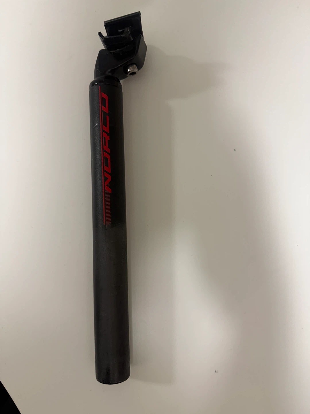 This is a Norco bicycle seatpost. It's made of black metal. Compatible with most mountain bikes. 31.6mm diameter
