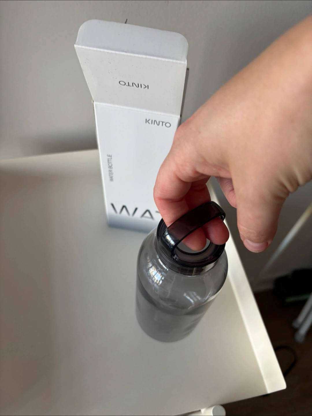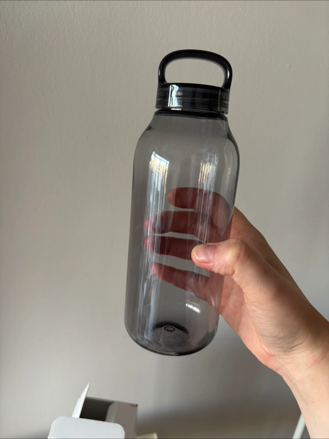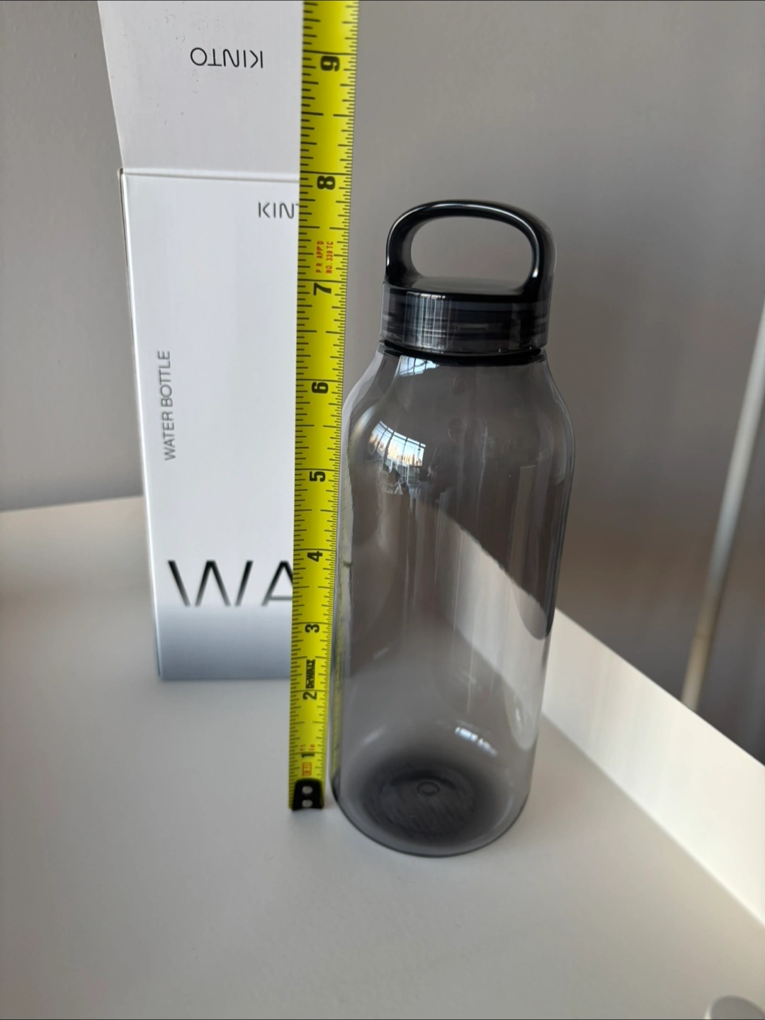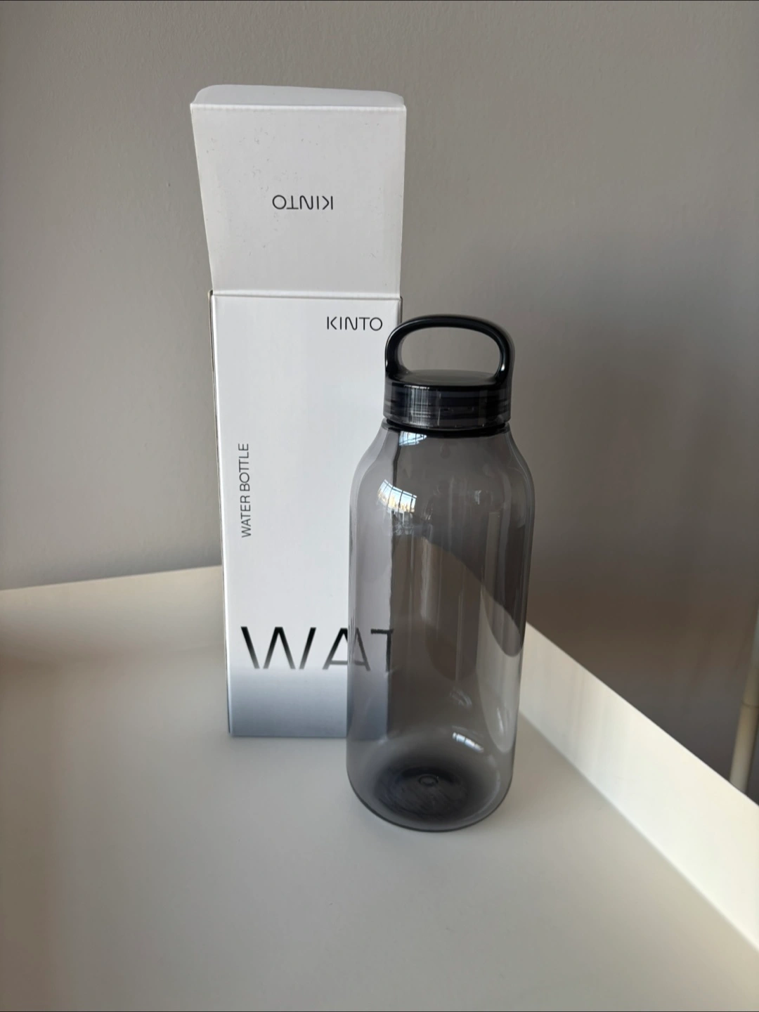Selling a Kinto water bottle in smoked grey! It's in new condition and comes with the original box. The bottle is about 8 inches tall. Perfect for staying hydrated on the go! Lightweight and compact WATER BOTTLE lets you hydrate effortlessly. Made of high quality transparent copolyester, it is durable and scratch resistant. The lid opens with a single twist and has a handle that is comfortable to hold, making it convenient to carry around. The bottle's beautiful form and transparency stands out when you put water inside