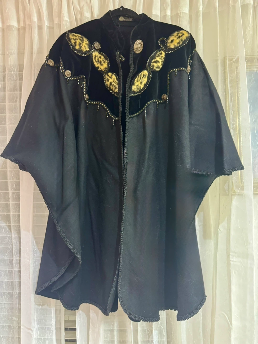 Vintage Black Cape with Velvet & Leopard Detail