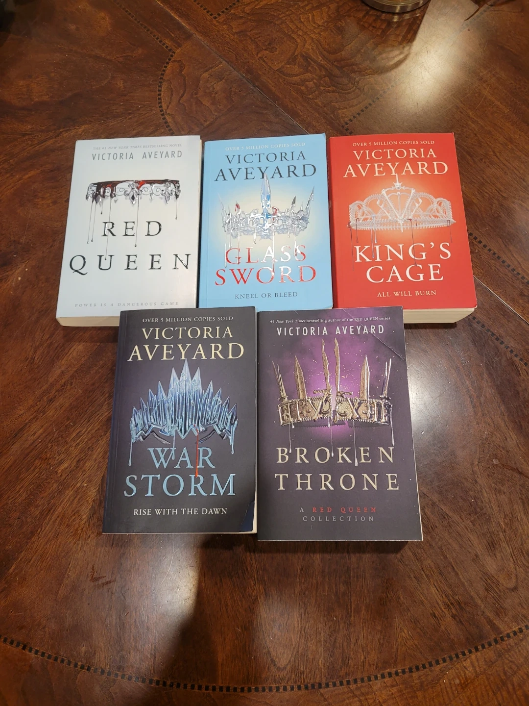 Selling the complete Red Queen series by Victoria Aveyard! Includes Red Queen, Glass Sword, King's Cage, War Storm, and Broken Throne. Perfect for anyone who loves a good fantasy read!