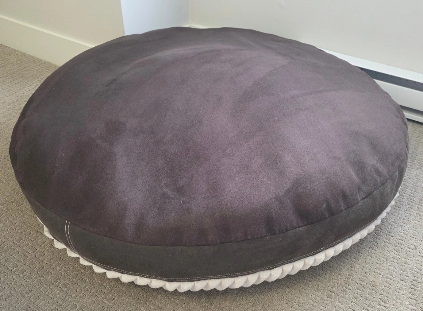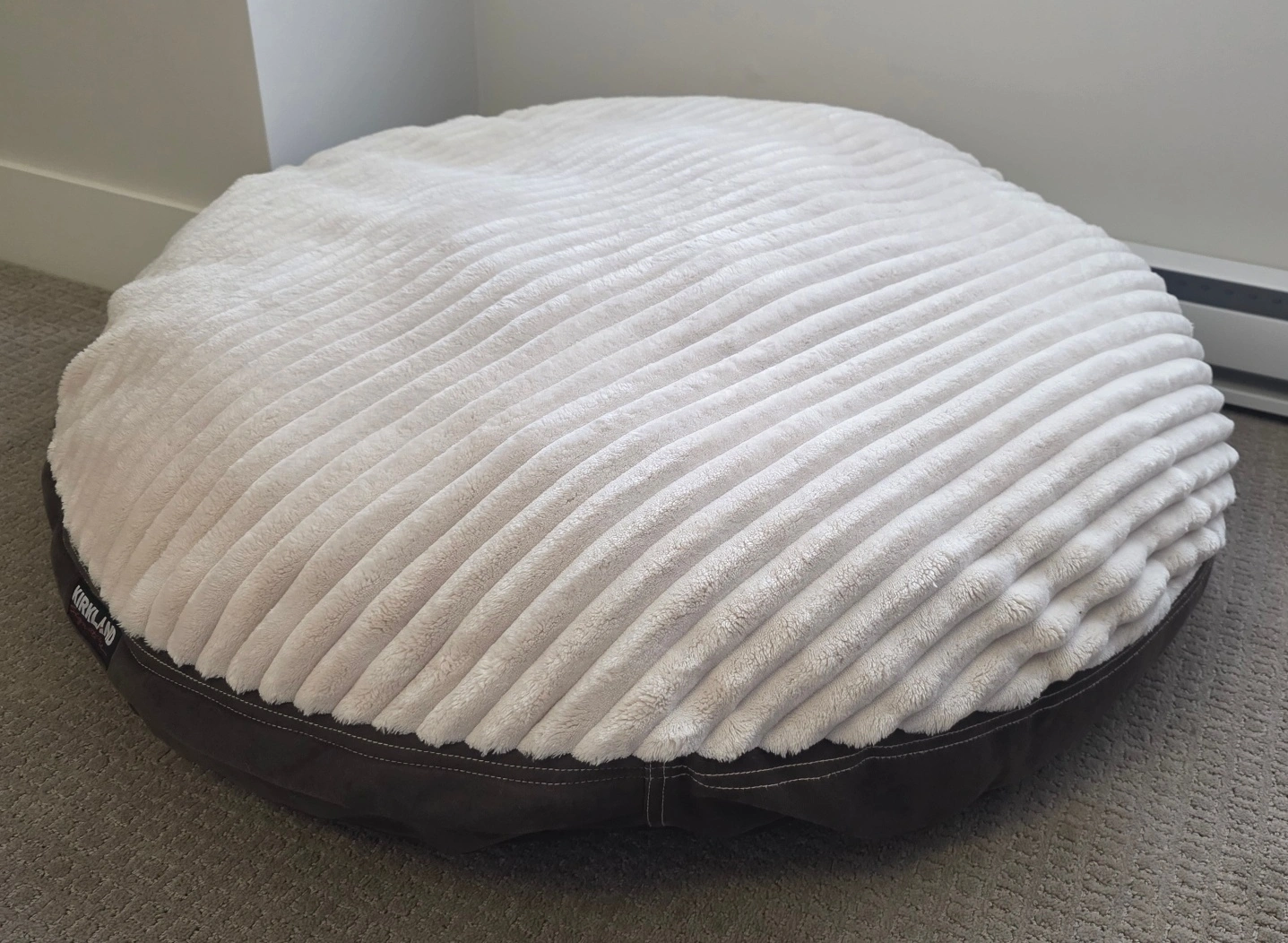 60Selling a super comfy Kirkland Signature round pet bed! It's in great shape and features a plush, cozy surface that your furry friend will absolutely love. The bed is brown and white, and the size(43 inch, 110vm) is perfect for medium to large pets. It’s made with high-quality materials for durability and comfort, ensuring your pet gets the best rest.