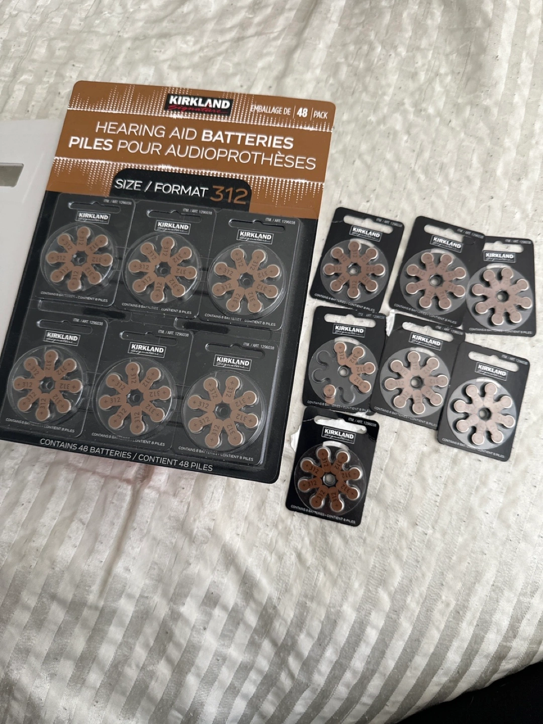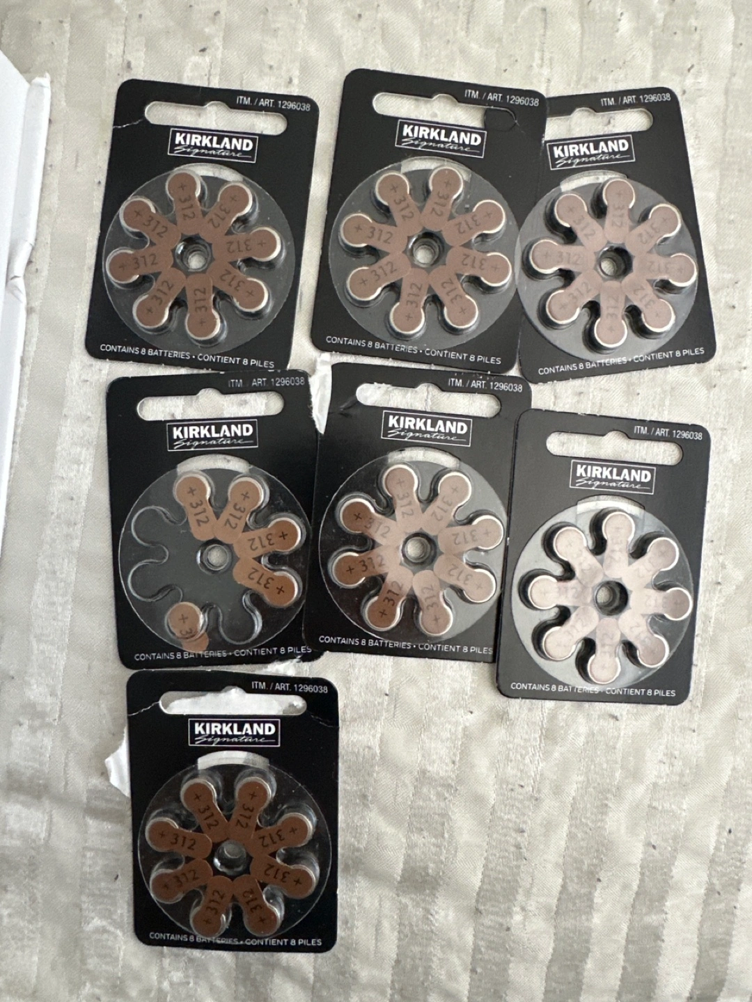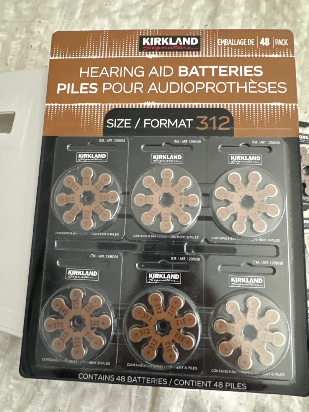 96Bulk pack of Kirkland Signature brand hearing aid batteries. Size 312. 100 batteries total. New in package. Pickup 168/84 Surrey.