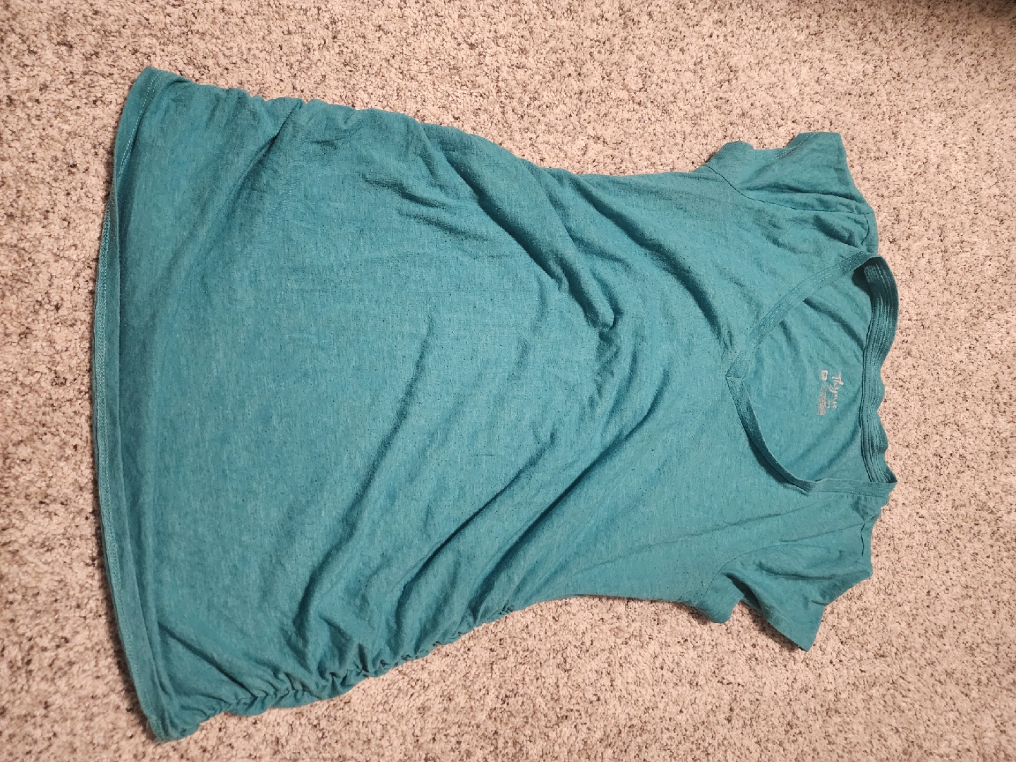 Selling a Thyme maternity top in size medium. It's a nice teal colour, perfect for a growing bump! piling on the shirt