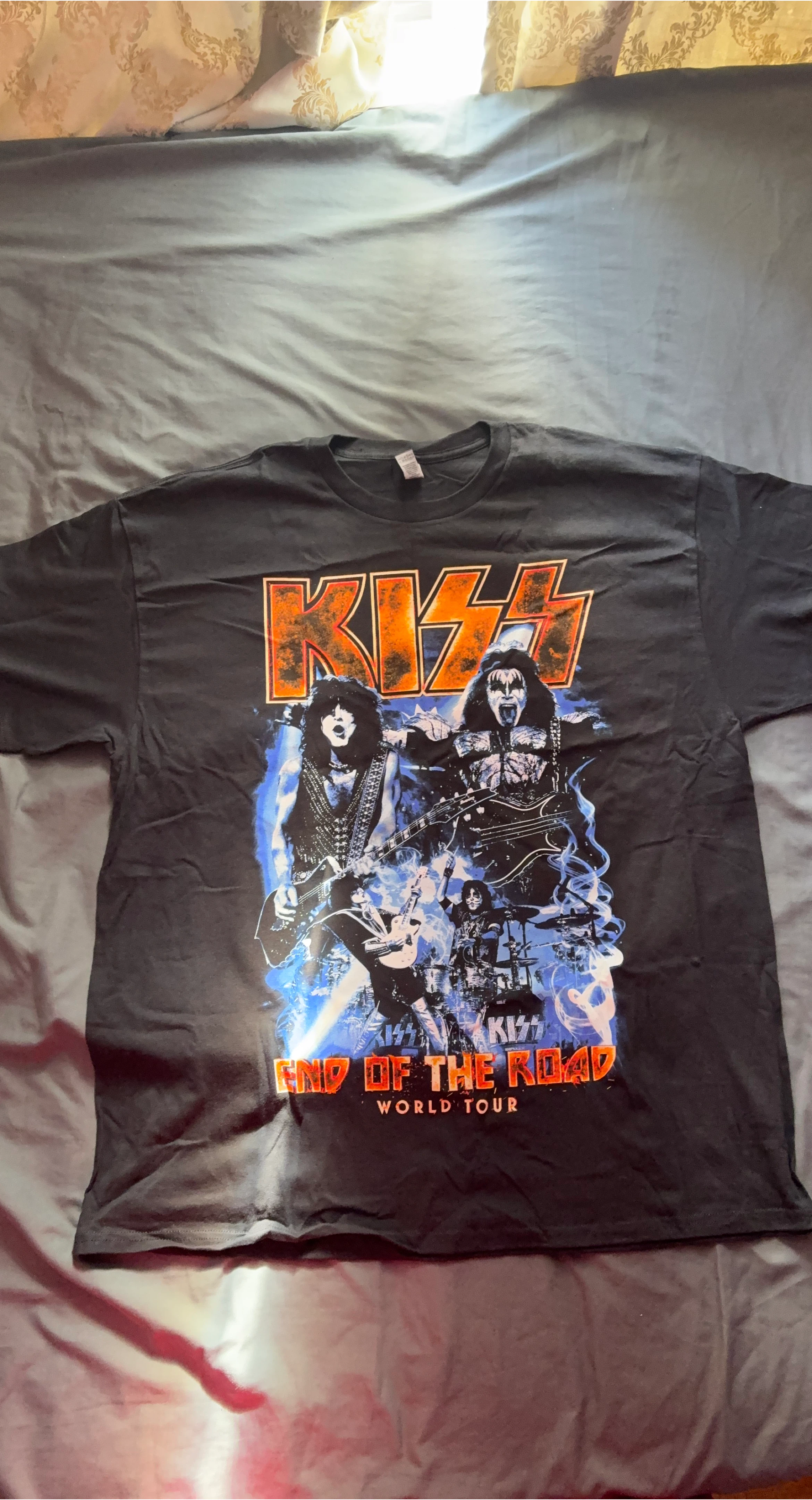 88Selling a KISS 'End of the Road' World Tour T-shirt! The shirt is black and features a graphic of the band. Great for any KISS fan!