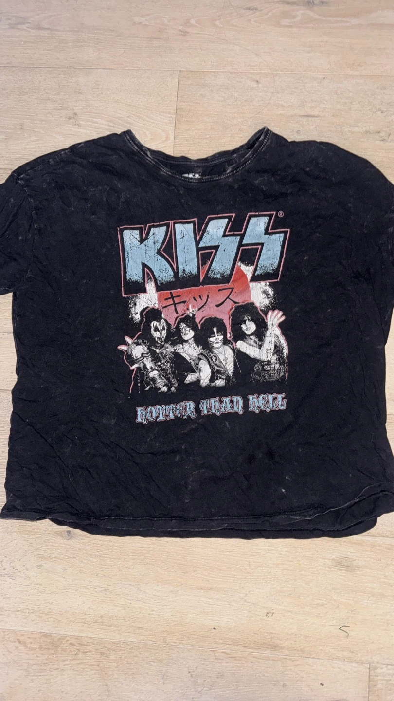 18Selling a KISS band t-shirt featuring the 'Hotter Than Hell' album graphic! It's a cool piece for any KISS fan kids xl