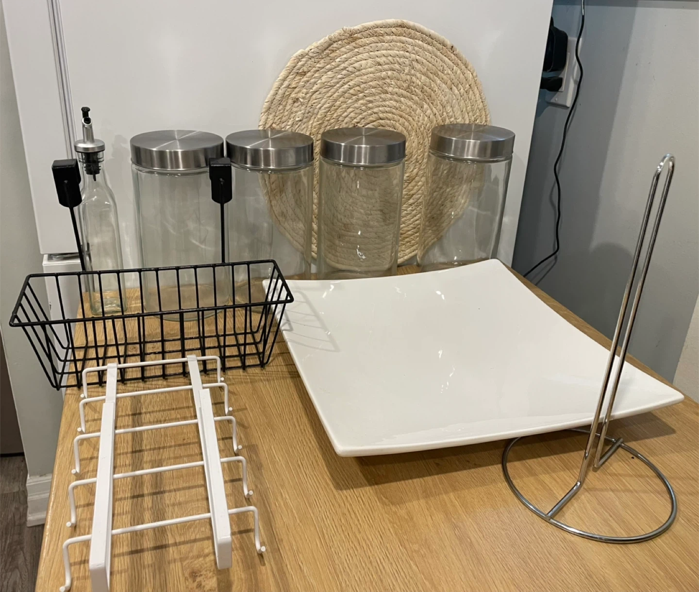 99Selling a variety of kitchen organization items to help declutter your space. Everything is in great condition, I just don’t use it anymore • Cylindrical containers (4 available) • Black basket (hang it in a door) • White mugs hanger • Oil dispenser • Paper towel holder • White serving plate Free. pick up: dundas and Winston Churchill