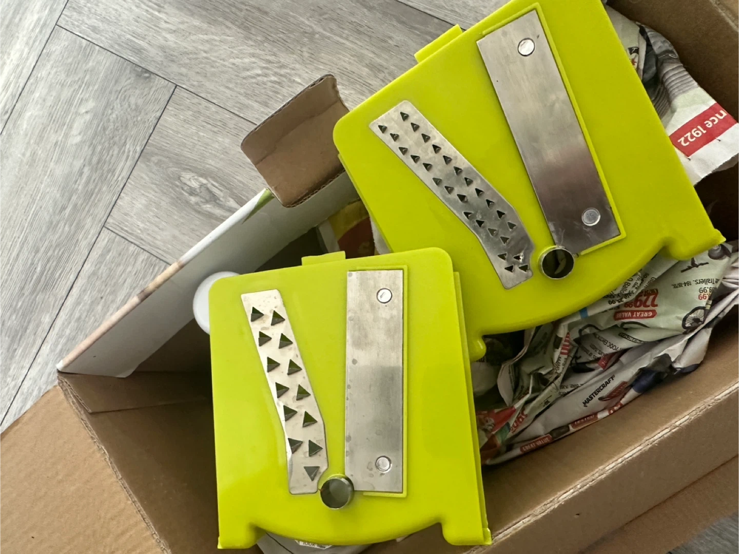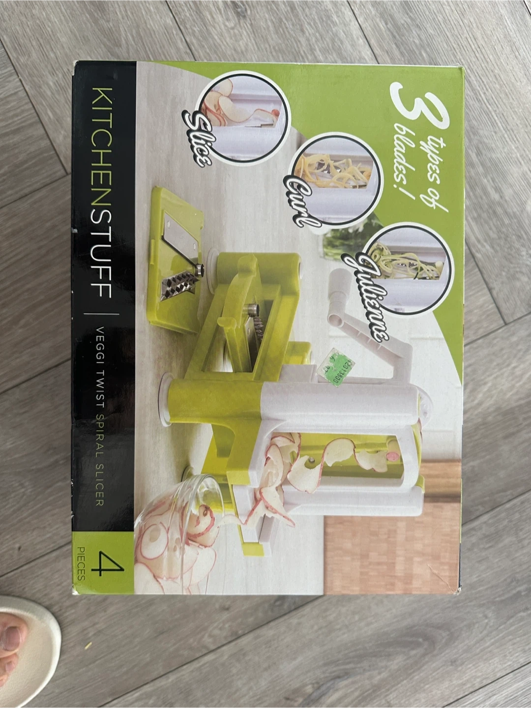 71Selling a Kitchen Stuff Veggi Twist Spiral Slicer! It comes with 3 types of blades: slice, curl, and julienne. It also comes with the box!