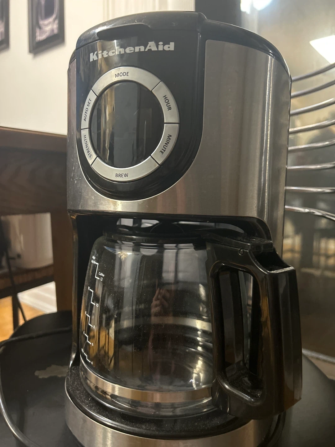 12Selling a KitchenAid coffee maker that can brew up to 12 cups! It has settings for auto set, strength, brew, hour, and minute. Perfect for your daily caffeine needs! Used only once and it in good condition!