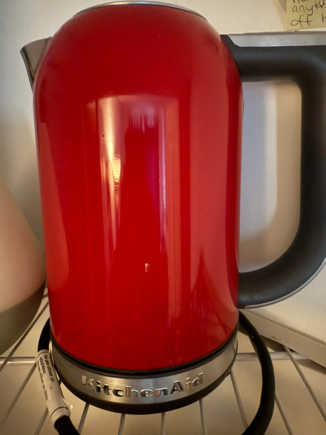 Selling a KitchenAid electric kettle in red! It's in great condition and ready to heat up your water for tea or coffee. The kettle has a digital display for temperature control and a 'hold temp' function. It’s a stylish and functional addition to any kitchen