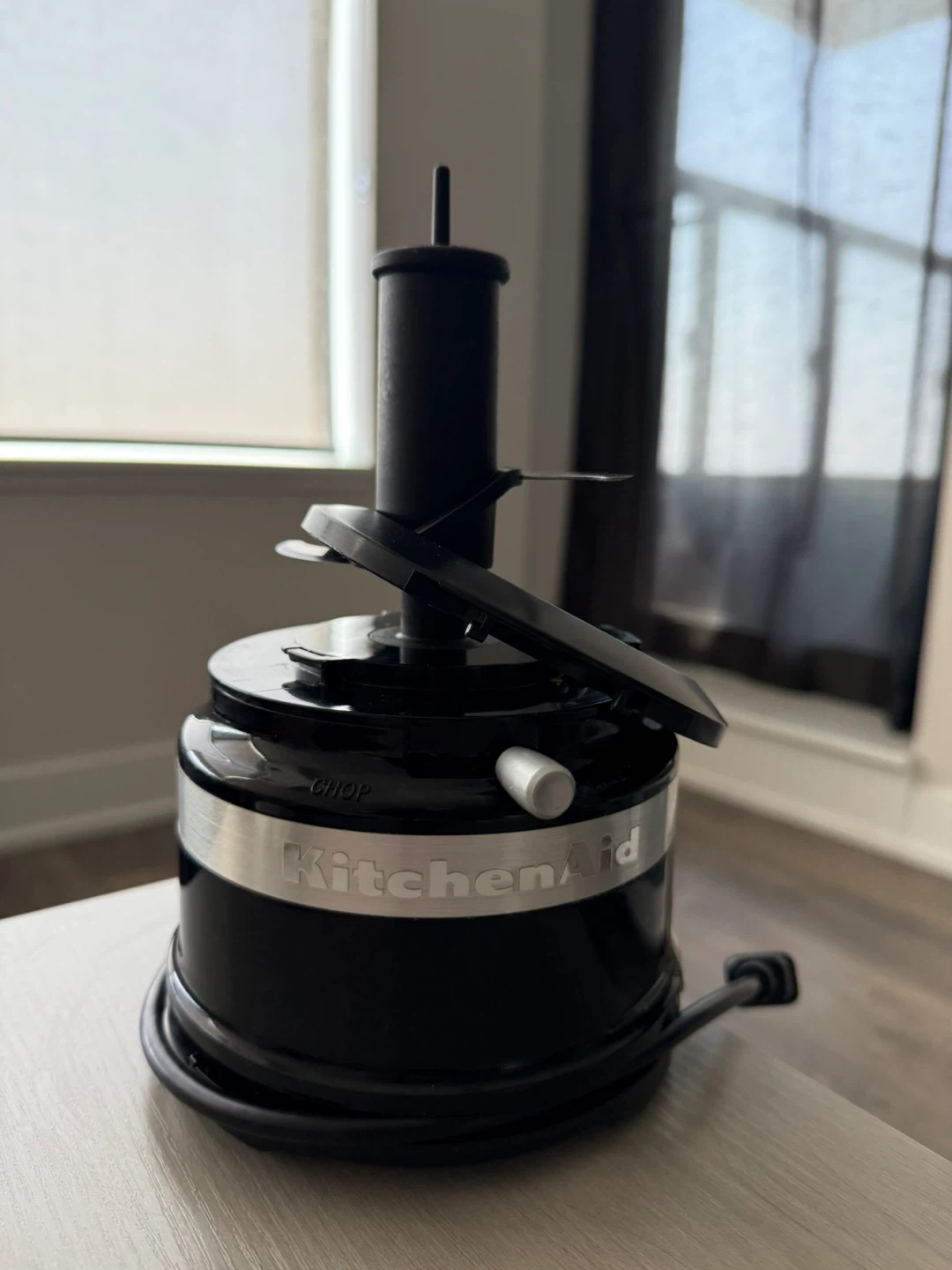 10Selling a KitchenAid food chopper in black. It's in great condition and ready to help with your meal prep! Perfect for chopping veggies, nuts. Missing the bowl.