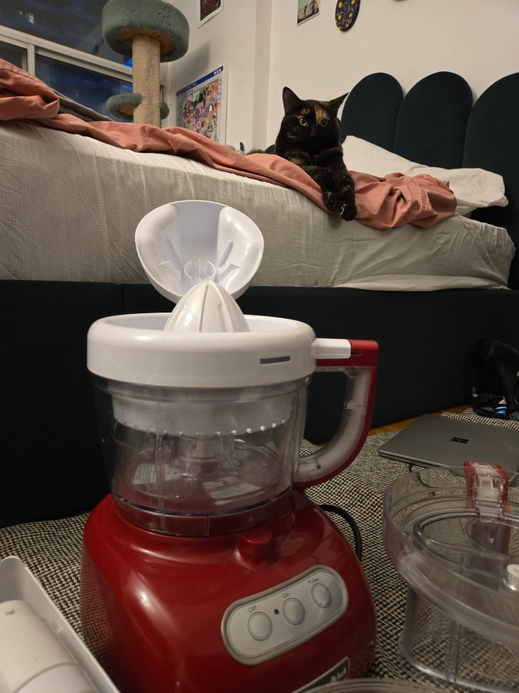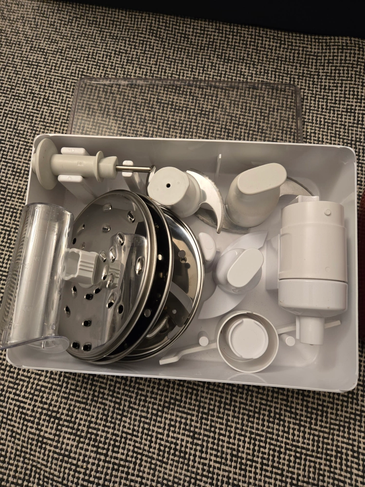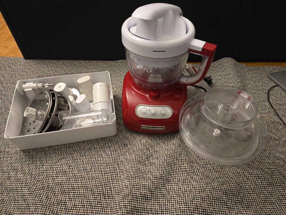 8Compact food processor. Multiple attachments included. Great for small kitchens. Works well.