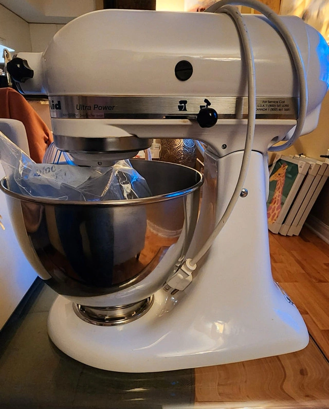 This is a KitchenAid Ultra Power stand mixer, perfect for all your baking needs. It's in good working condition, ready to whip up delightful treats. This model is known for its reliability and power, making it a staple in any kitchen. * Brand: KitchenAid * Model: Ultra Power * Type: Stand Mixer * Colour: White If the ad is up, the mixer is available! Considering similar KitchenAid mixers are selling for around $200-$350 on Kijiji, I've priced this one to sell!