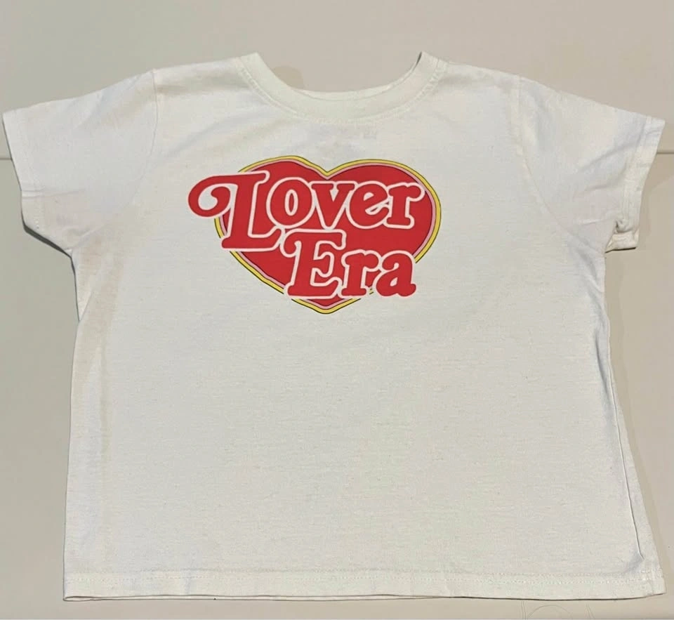 Cream Lover Era T-shirt with a red heart, perfect for Swifties or lovers. Youth size M can also fit ladies size XS/S. Fabric is a bit worn. Available for pickup in Richmond Hill, Riverdale, or Don Mills/Finch.