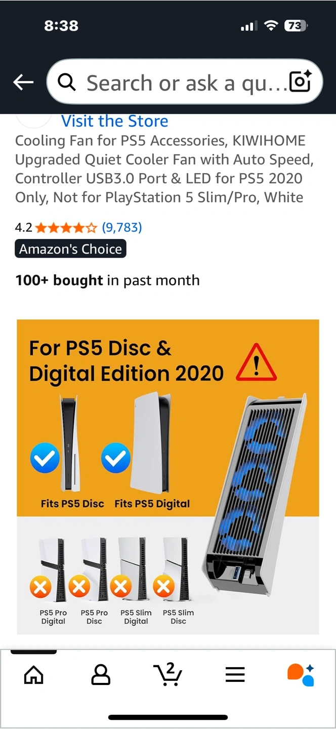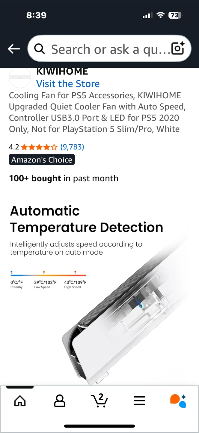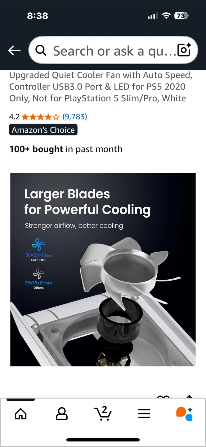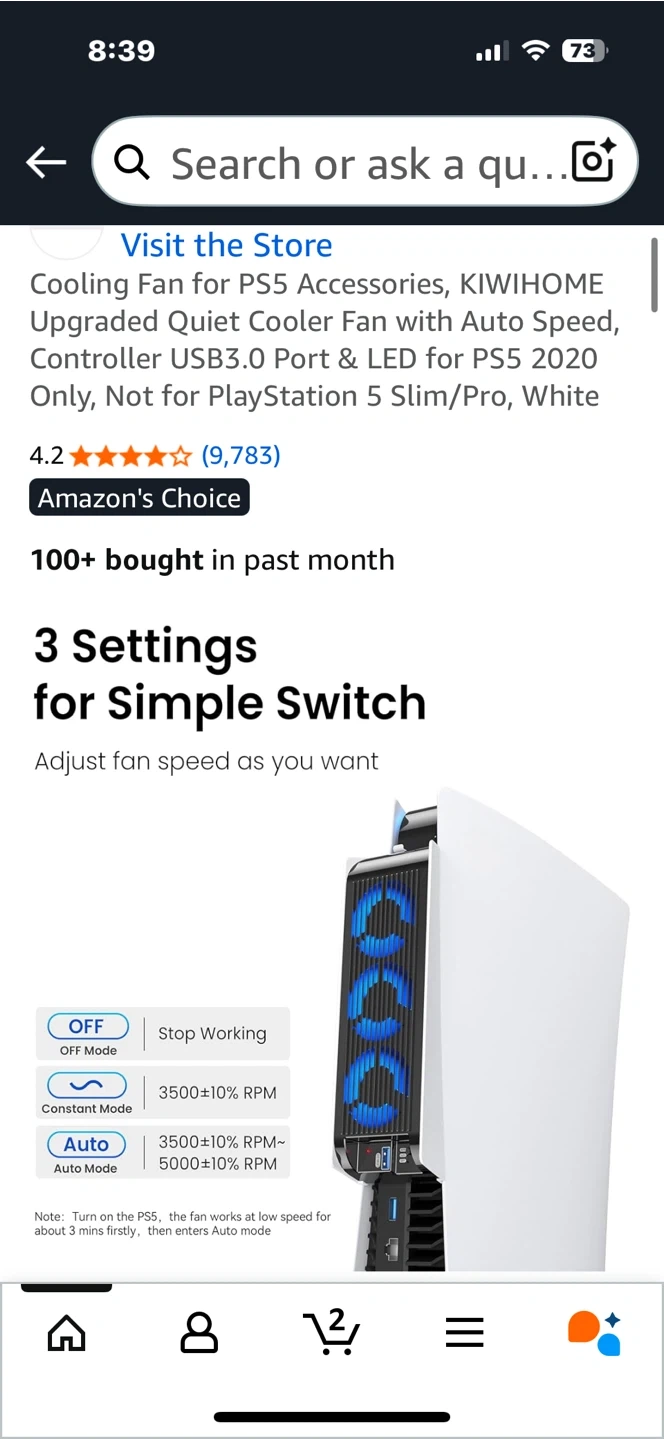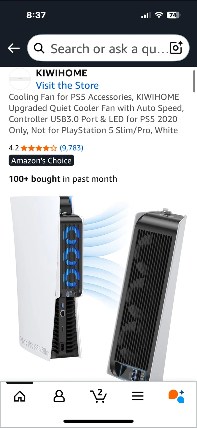 Keep your PS5 cool with this KIWIHOME cooling fan! It features auto speed control, a USB3.0 port, and LED lights. New open box