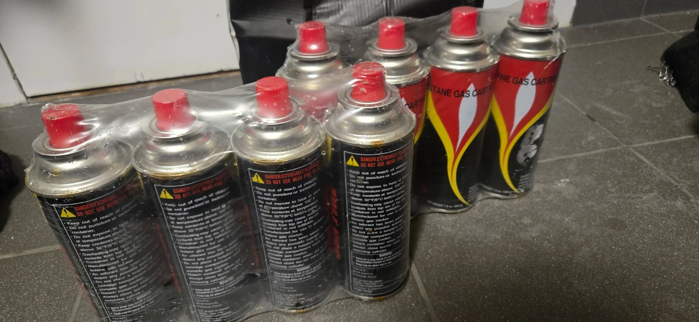 This is a 7-pack of Sun Fire butane gas cartridges. Each cartridge contains 7.8 oz (220 g) of butane gas. They're designed for portable stoves and grills. The cartridges have a standard valve connection. 1 pack available