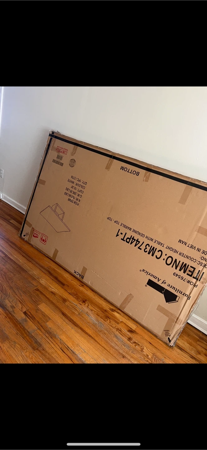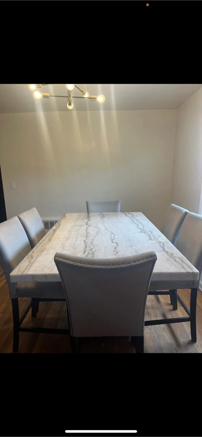Counter height dining table with a genuine marble top & table base Includes original box never open Assembly required.