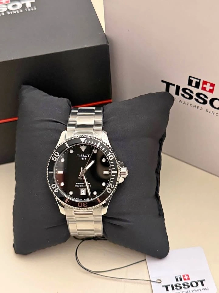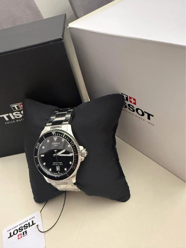 Brand new, never worn. 100% authentic Swiss-made dive-inspired watch sleek black dial and rugged build for daily wear or serious water use.