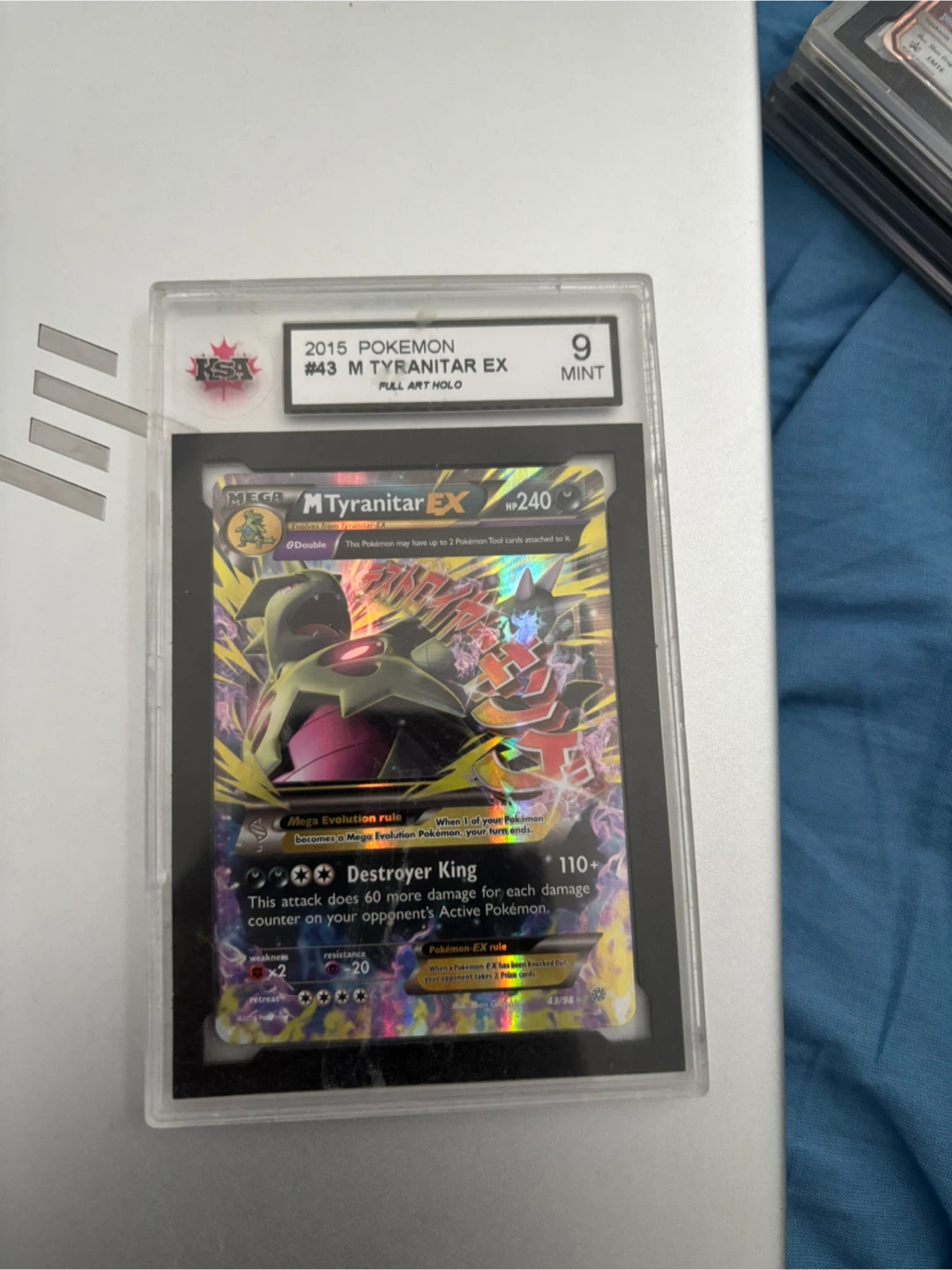 Selling a 2015 Pokemon card, specifically #43 M Tyranitar EX. It's in mint condition and has been graded a 9.