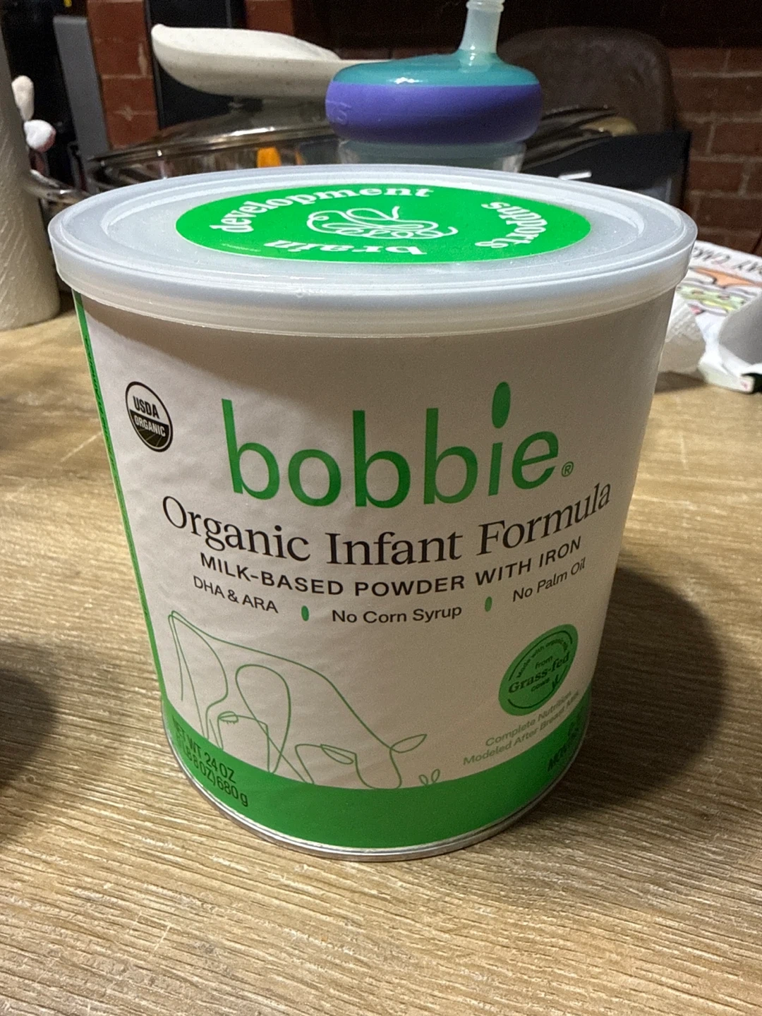 Bobbie Organic Infant Formula is milk-based powder with iron. It's USDA Organic and contains DHA & ARA. No corn syrup or palm oil.