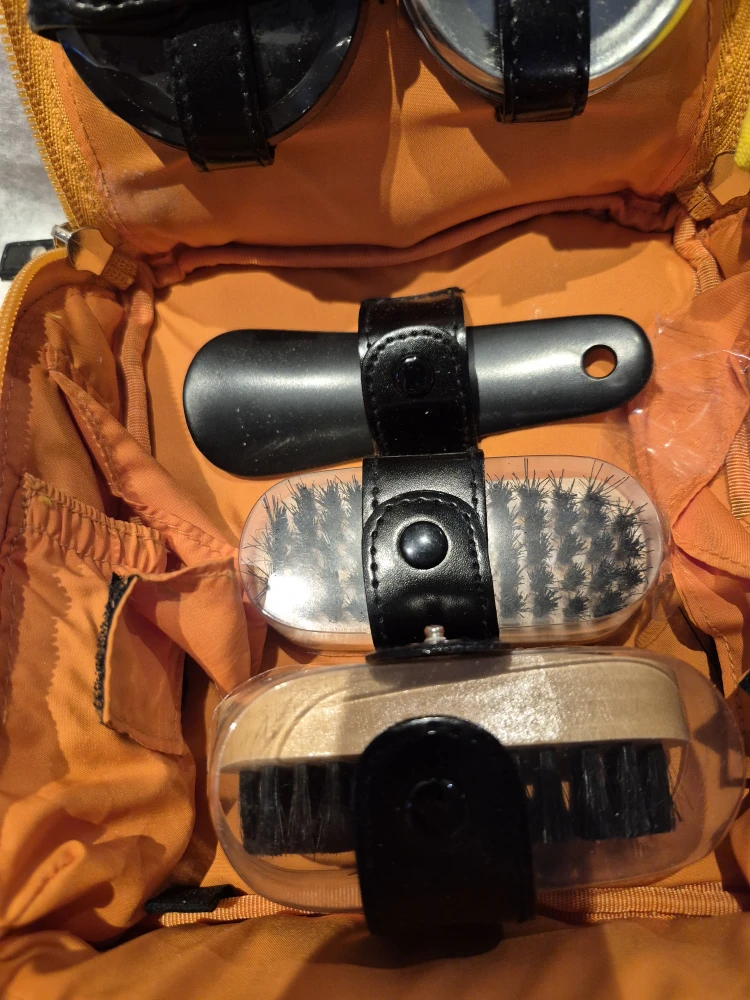Get your shoes looking their best with this Kenneth Cole Reaction Complete Shoe Shine Kit! It comes in a handy orange carrying case and includes everything you need for a professional shine. You'll find brushes, polishes, and applicators to keep your shoes in top condition