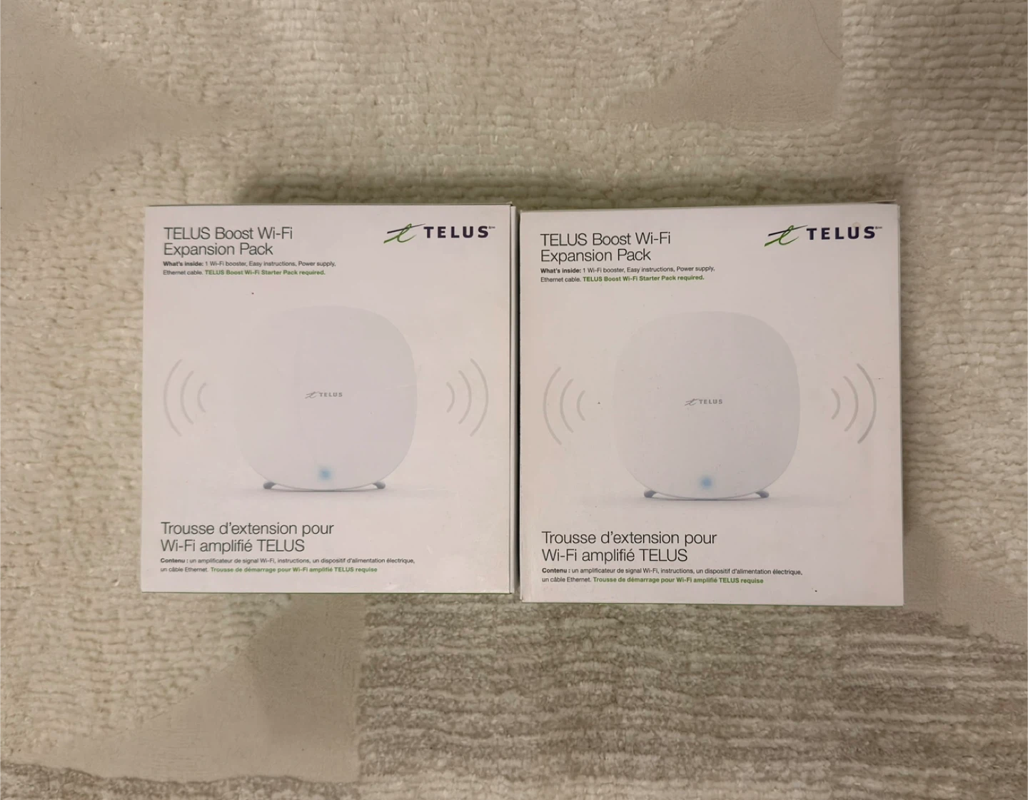 Boost your home internet coverage with this Telus Boost Wi-Fi Starter Pack. This is the 802.11ac (Wi-Fi 5) dual-band system, perfect for eliminating dead zones in your home by creating a seamless mesh network.