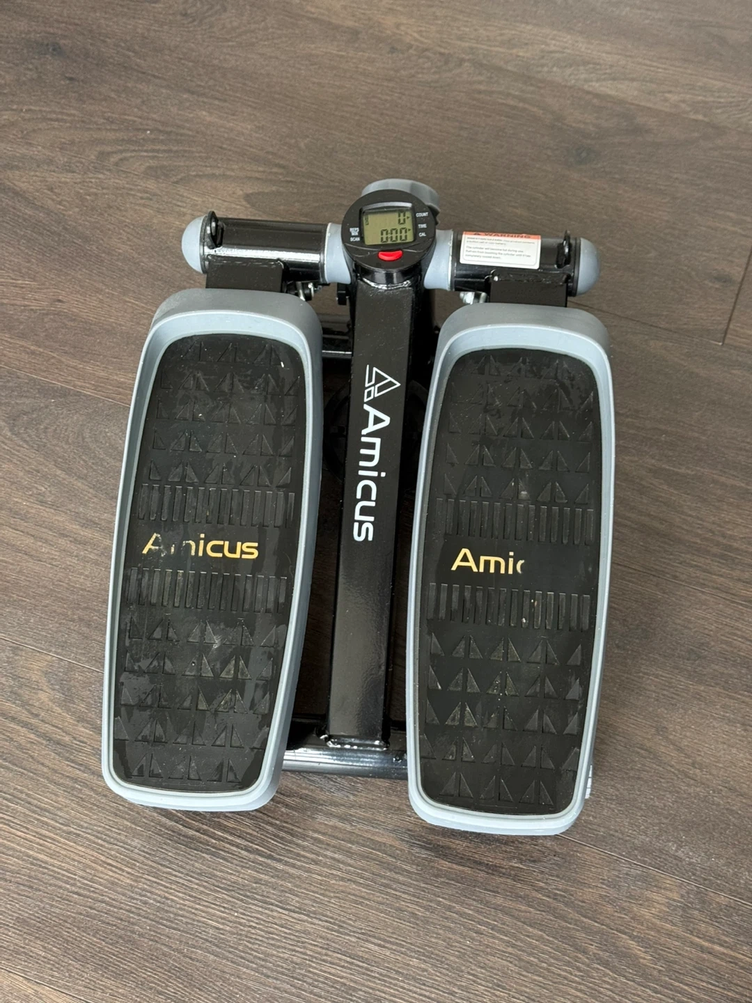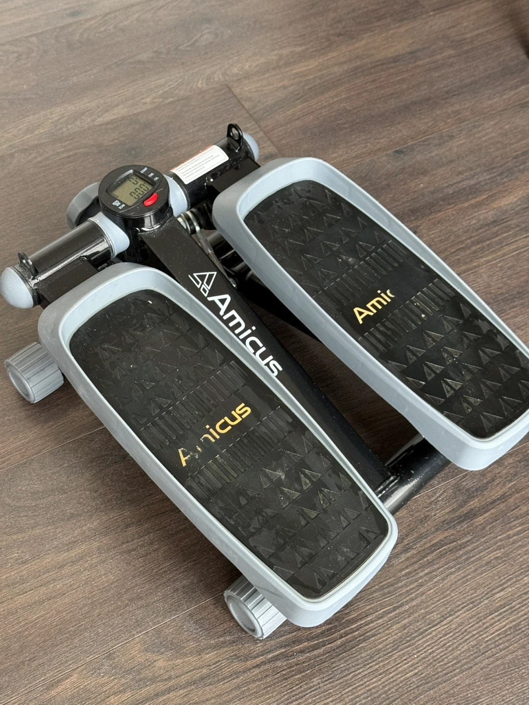 Amicus stepper exercise machine is great for at-home workouts. It features a digital display showing steps and time (working unstable, not always)