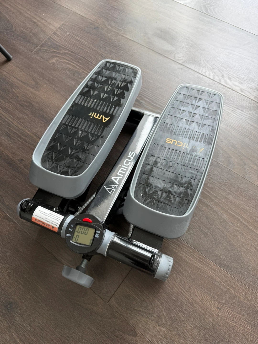 Amicus stepper exercise machine is great for at-home workouts. It features a digital display showing steps and time (working unstable, not always)