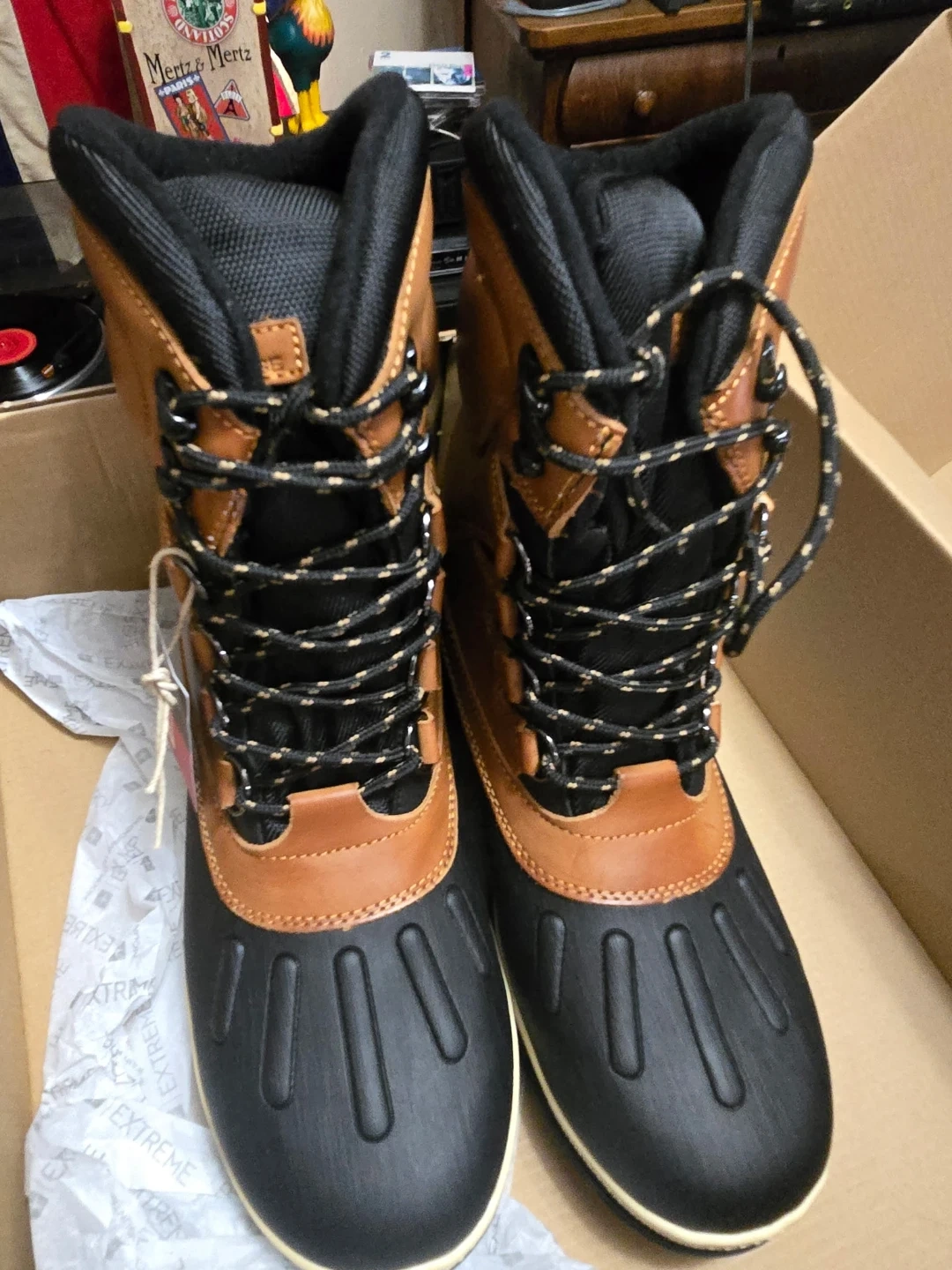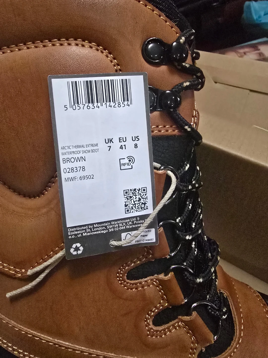 Men's brown waterproof snow boots by Mountain Warehouse. These boots are arctic thermal and have lace-up closures. They are a size 8 US.