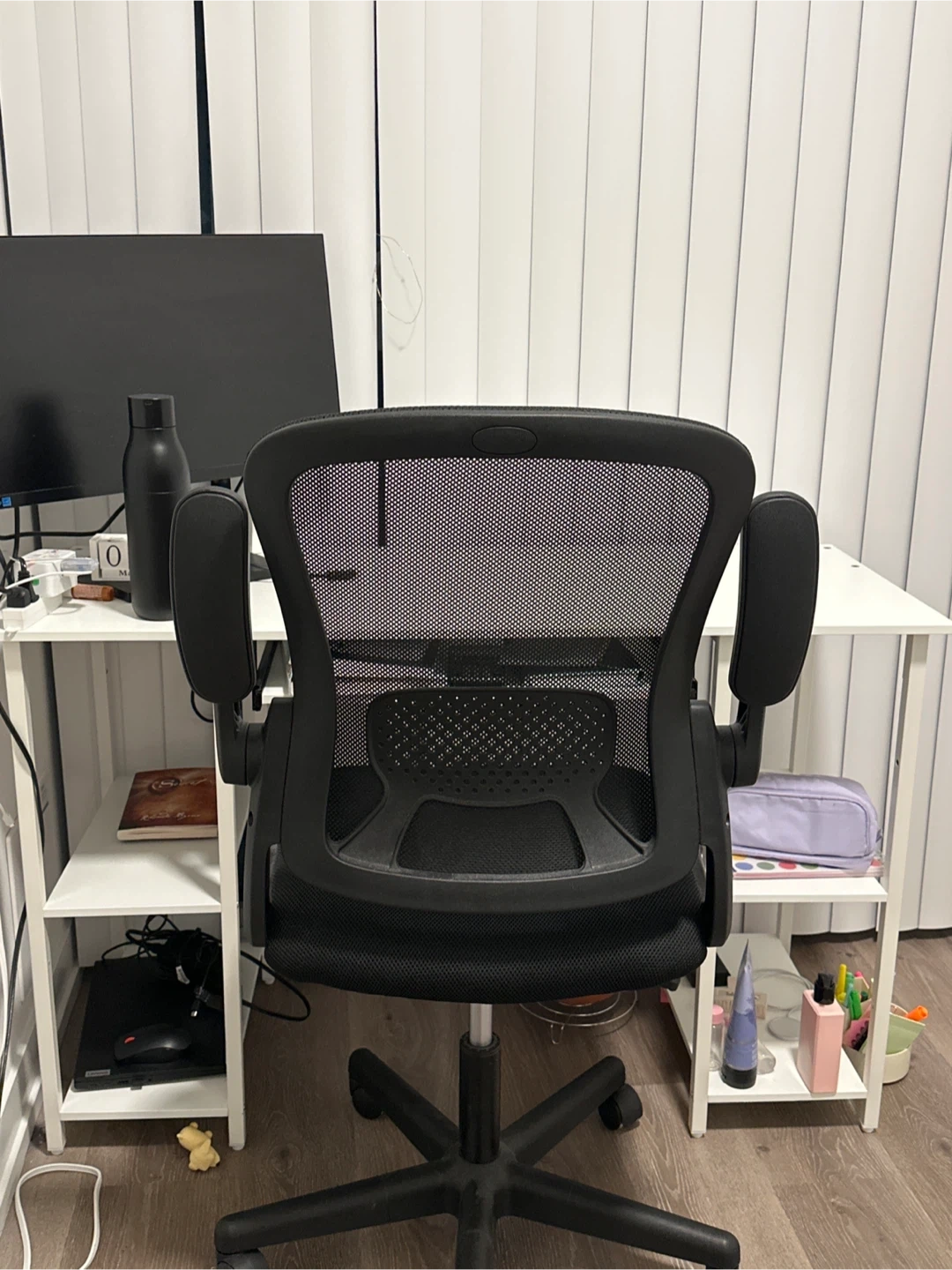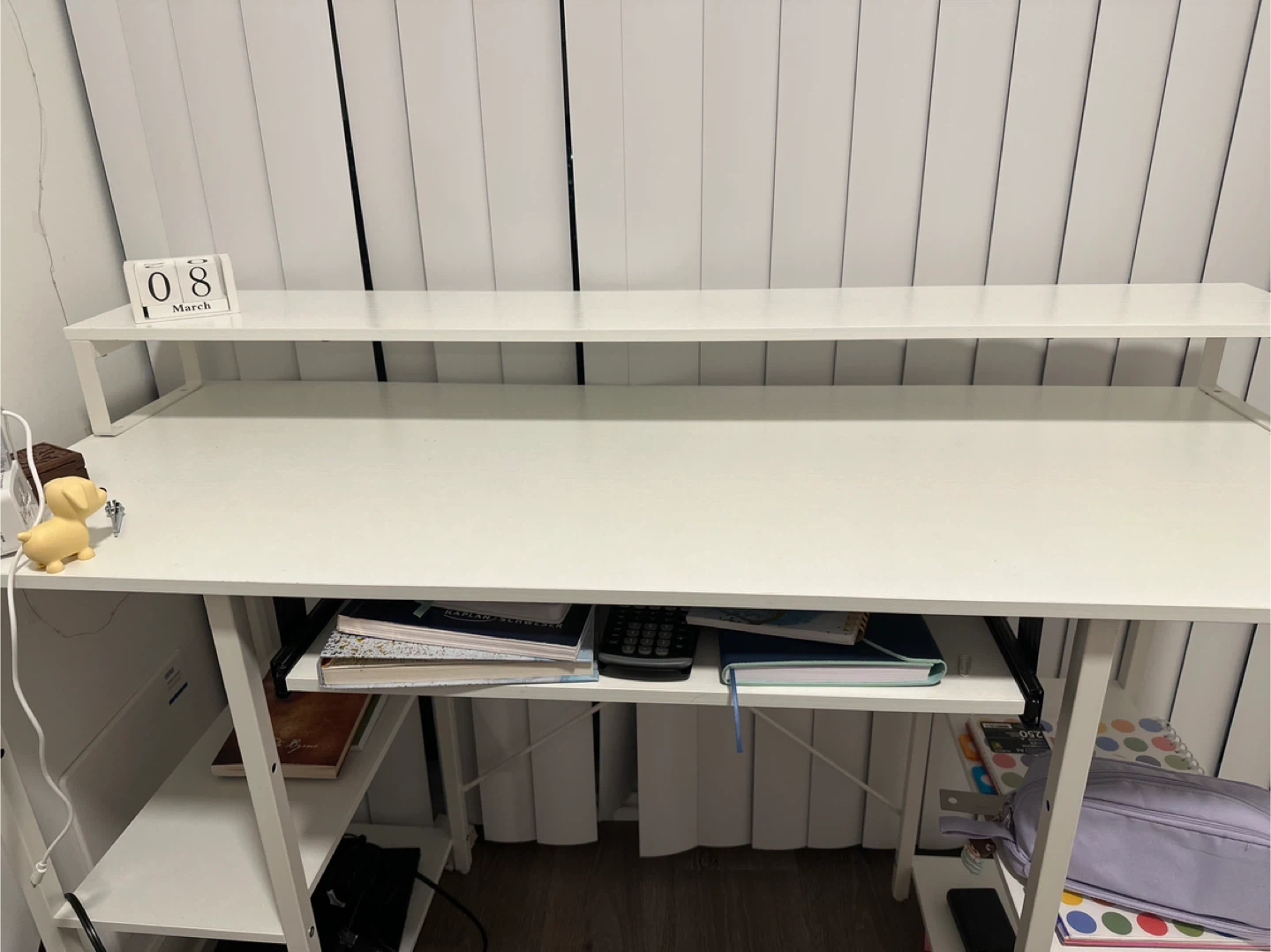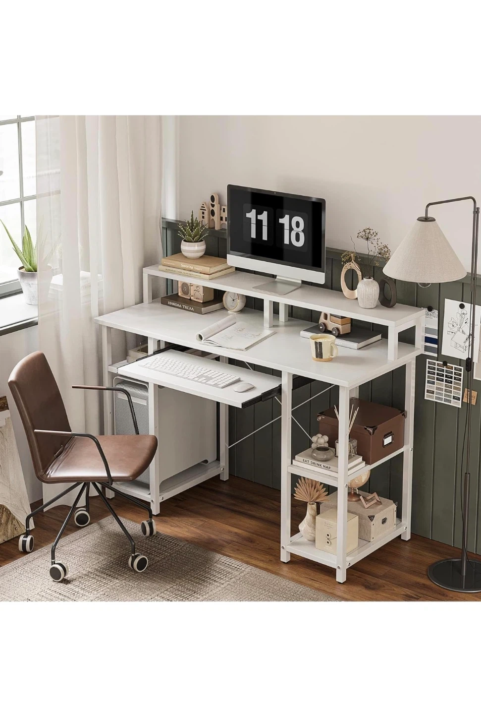 White computer desk with shelves and chair