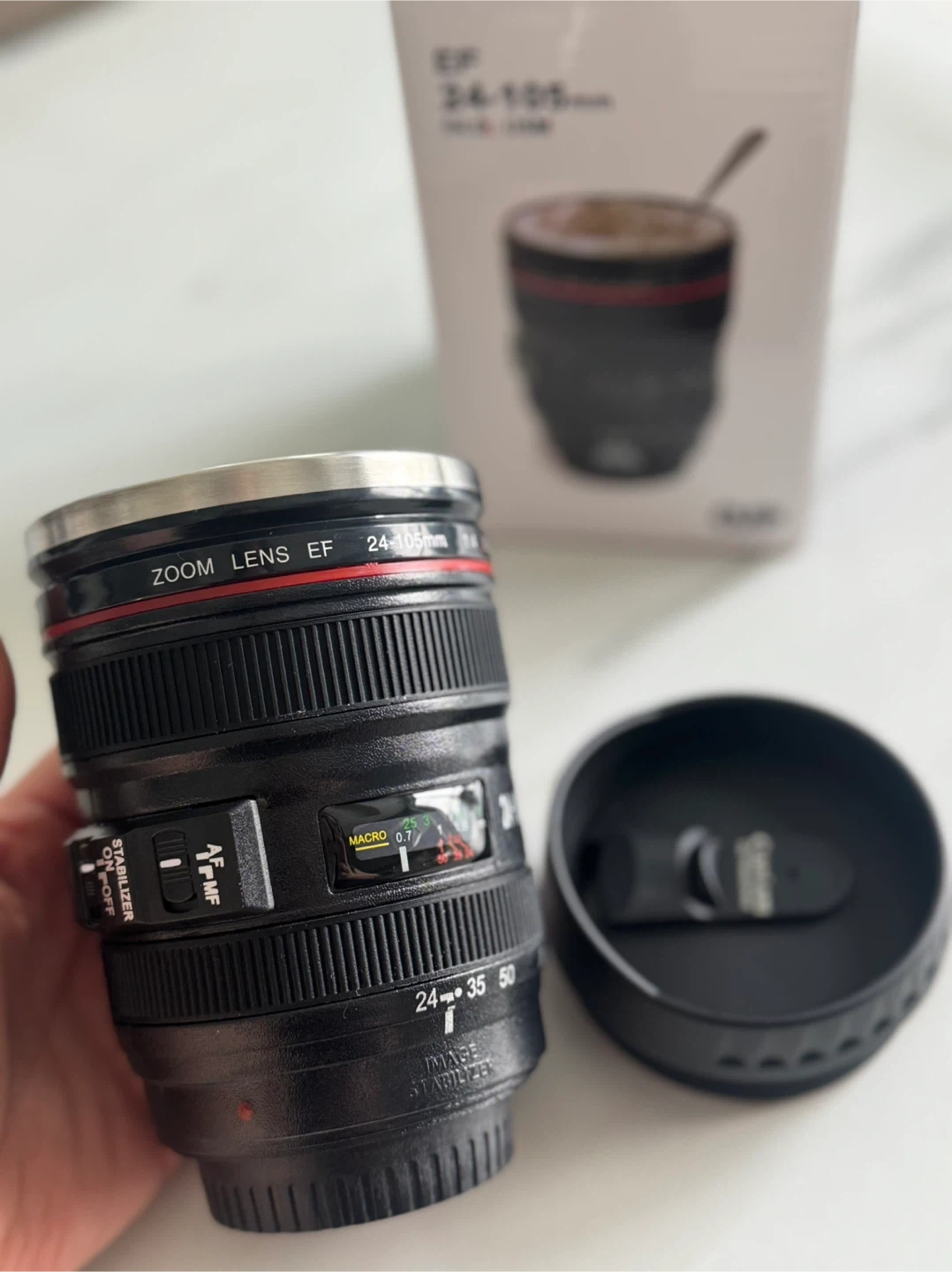 I'm selling a brand new Canon EF 24-105mm camera lens mug! It's a fun and unique gift for any photography enthusiast.